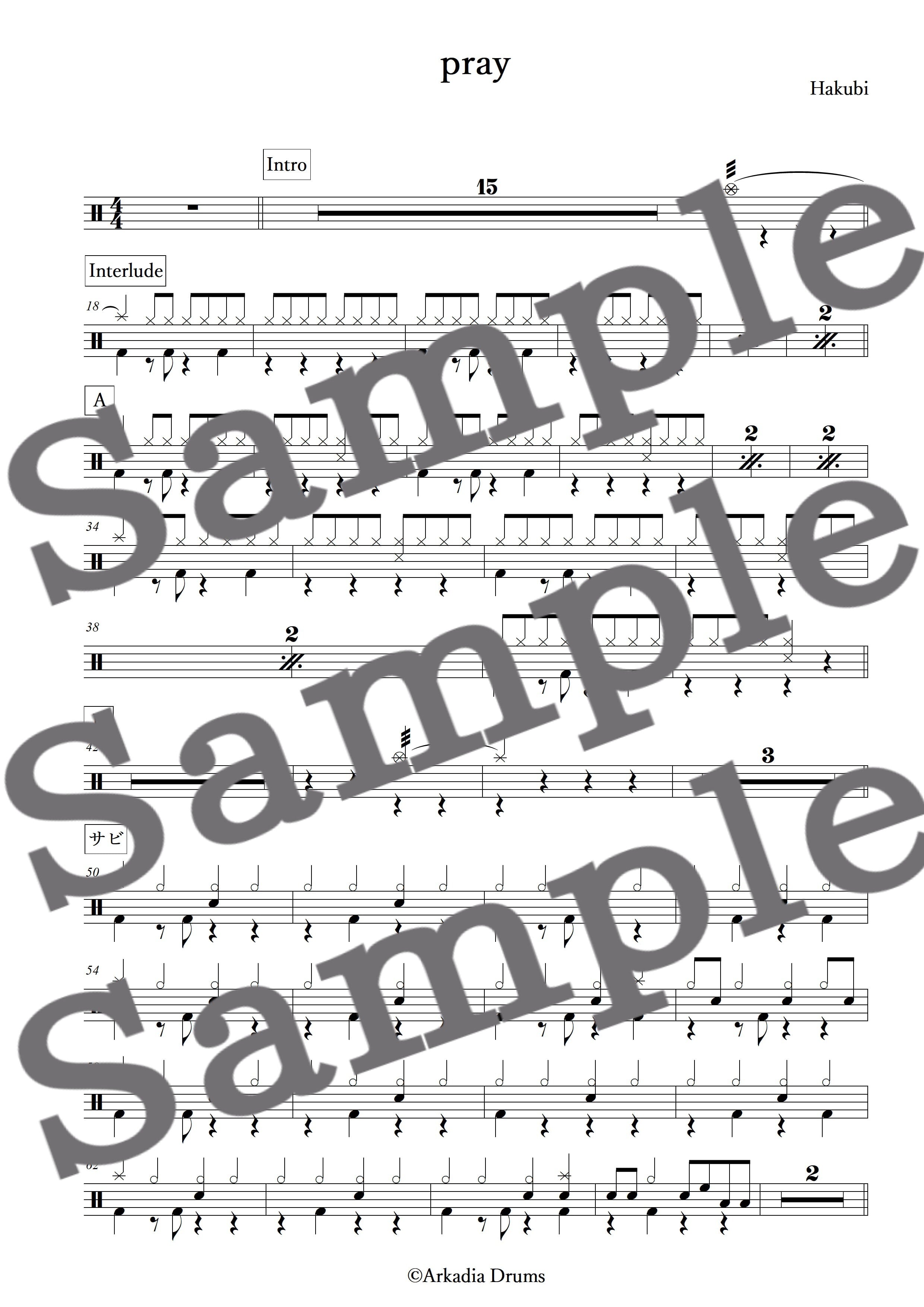 pray(Hakubi)のドラム楽譜です。