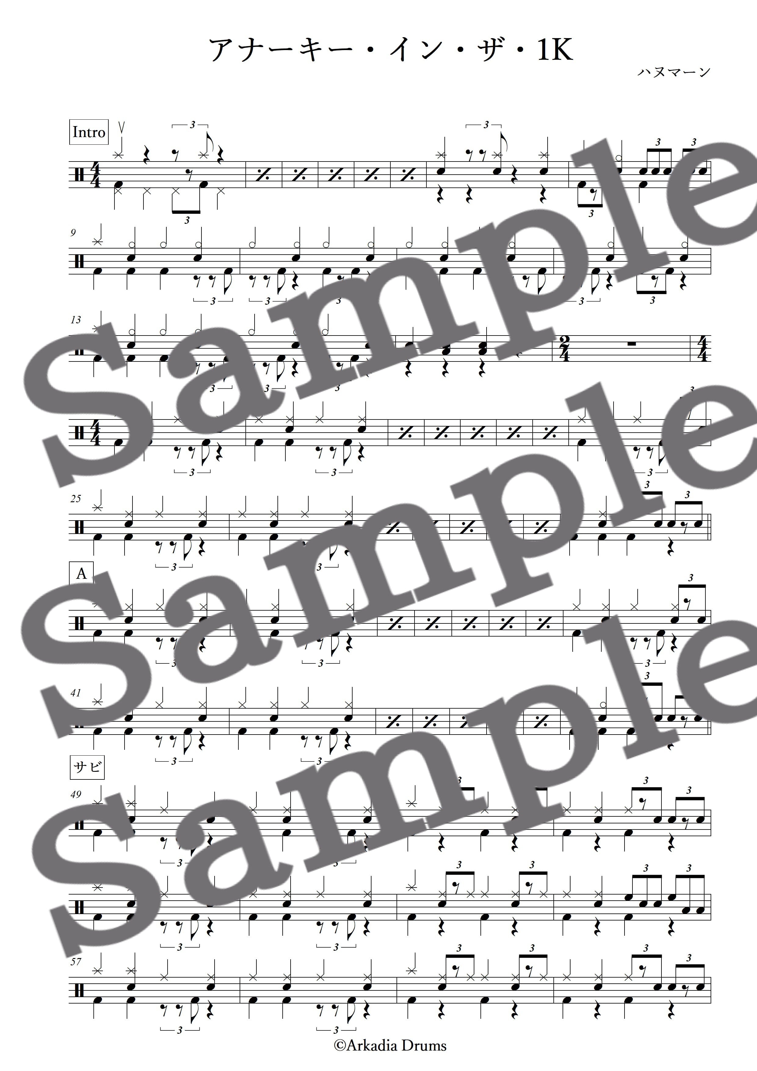 アナーキー・イン・ザ・1K(ハヌマーン)のドラム楽譜です。