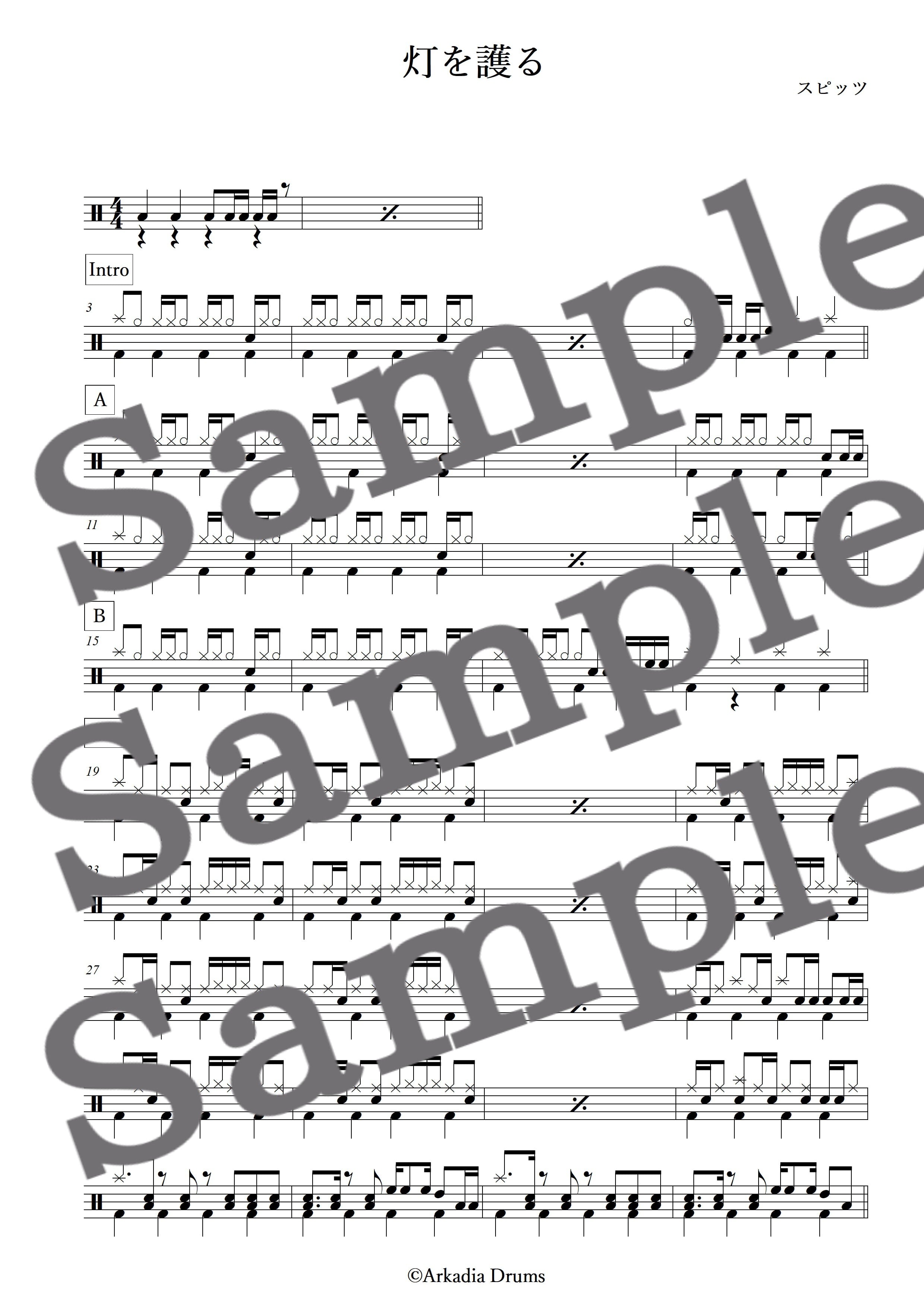 ドラムのみの楽譜であること、また大きめのセクションマークを配置しているので、演奏中でも迷いにくいのが特徴です。
