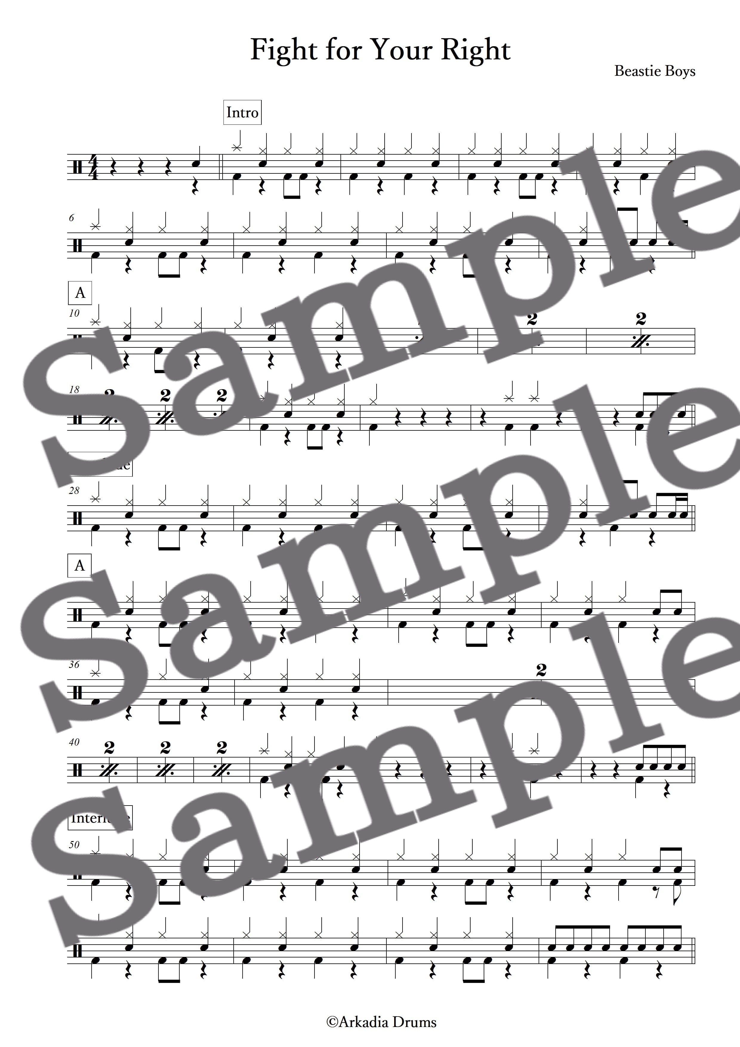 Fight for Your Right(Beastie Boys)のドラム楽譜です。