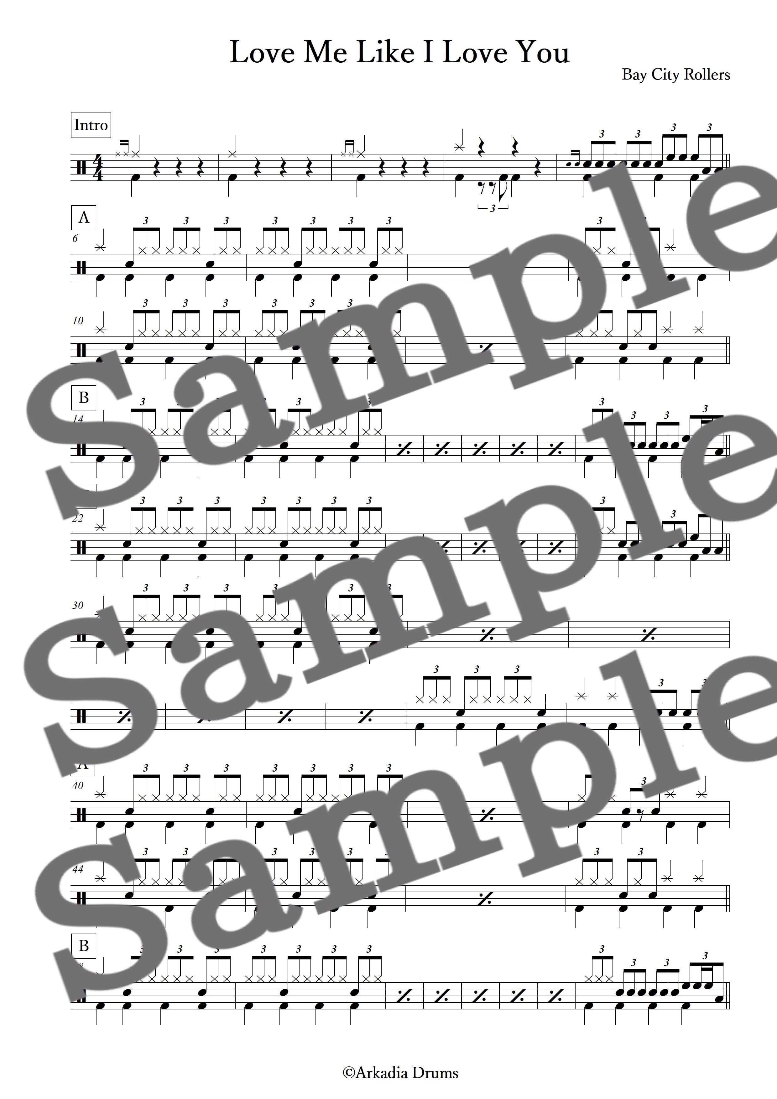 Love Me Like I Love You(Bay City Rollers)のドラム楽譜です。