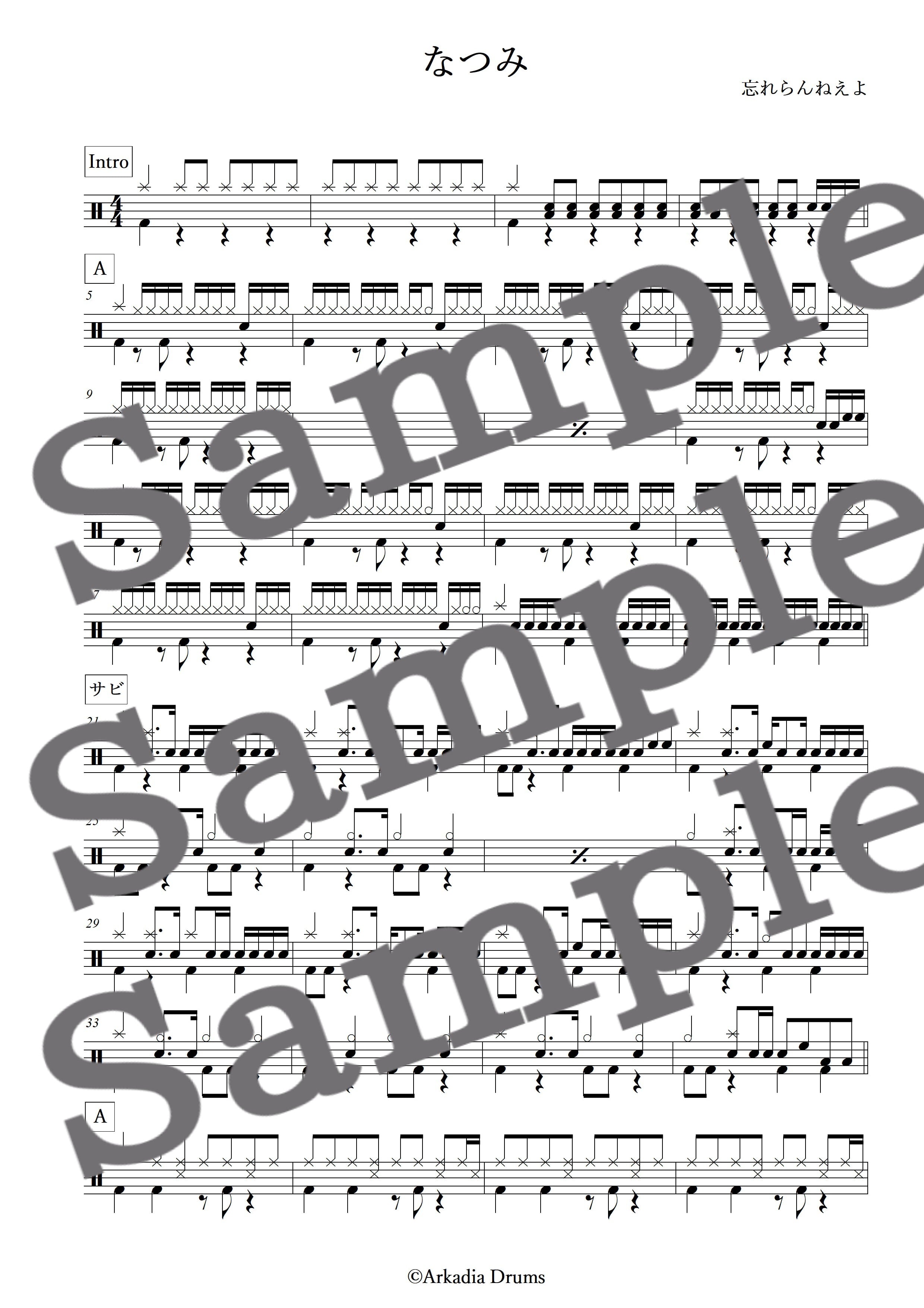 なつみ(忘れらんねえよ)のドラム楽譜です。