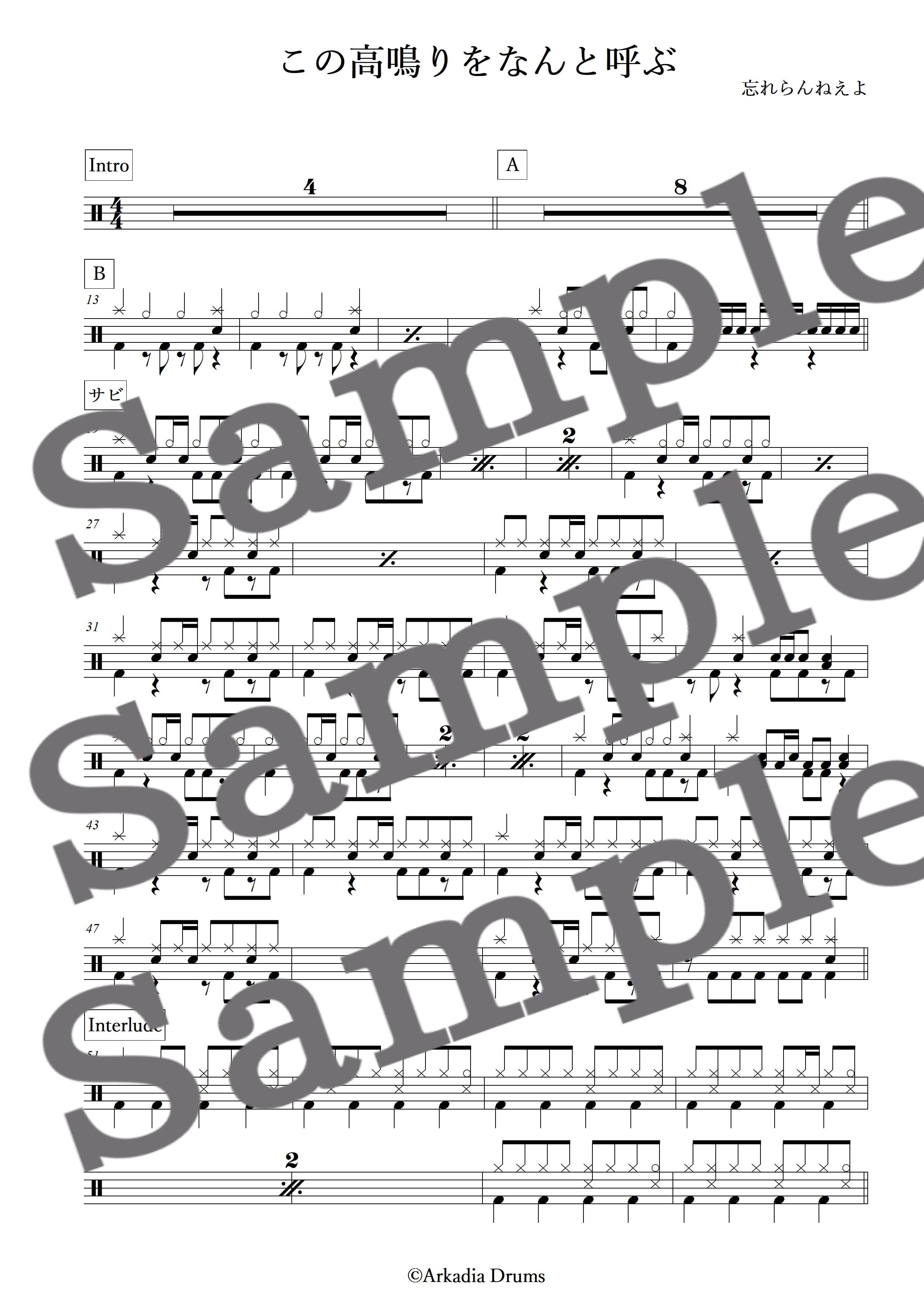 この高鳴りをなんと呼ぶ(忘れらんねえよ)のドラム楽譜です。