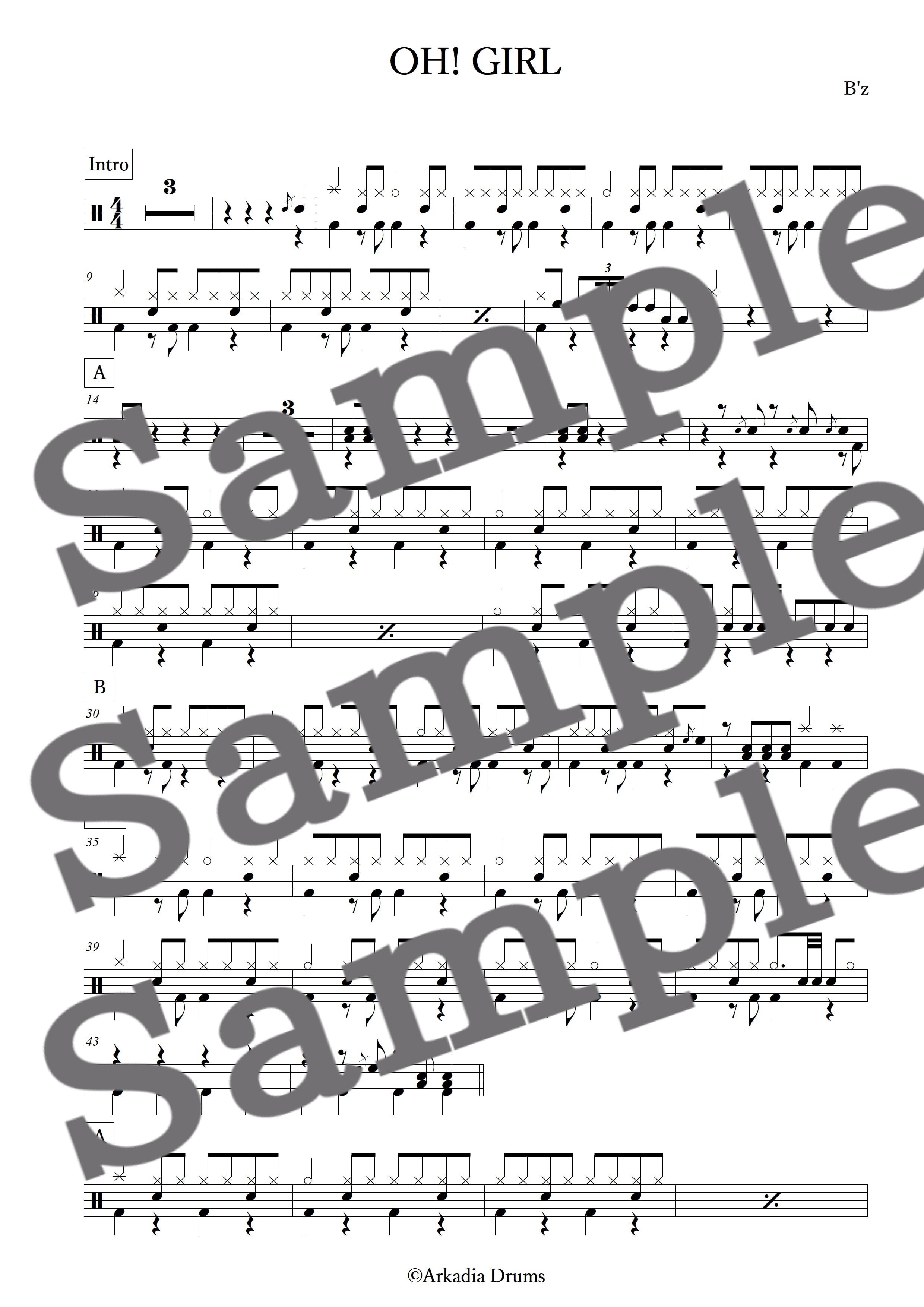 OH! GIRL(B'z)のドラム楽譜です。