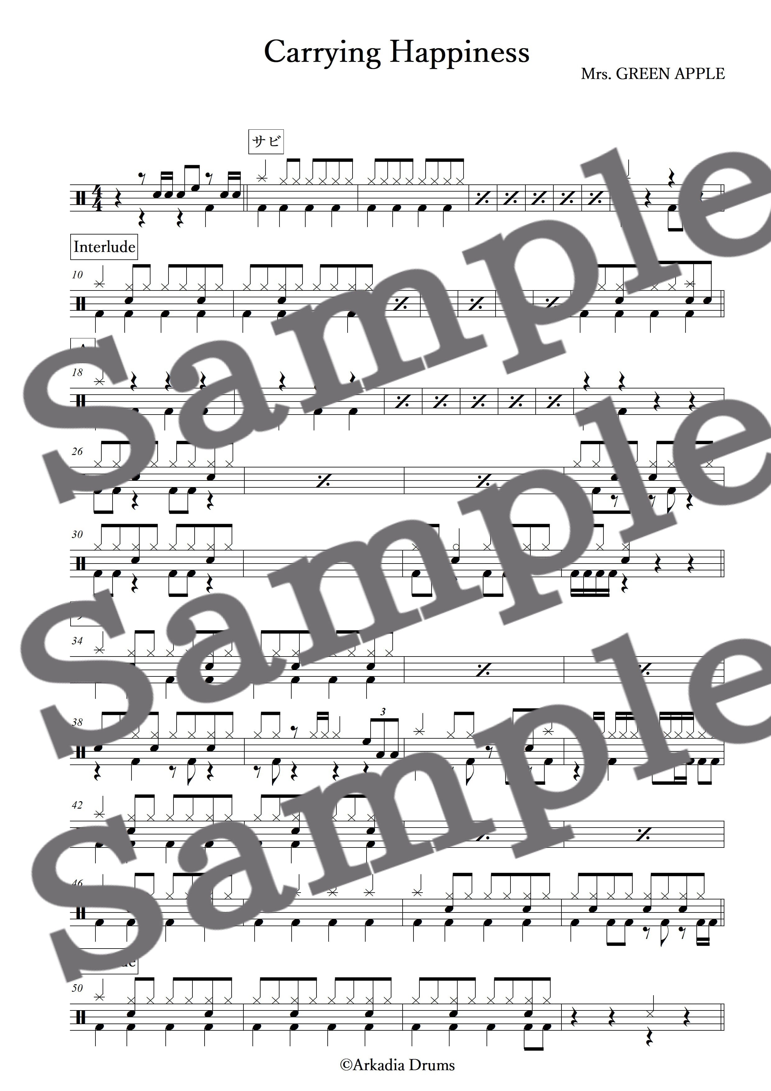 Carrying Happiness(Mrs. GREEN APPLE)のドラム楽譜です。