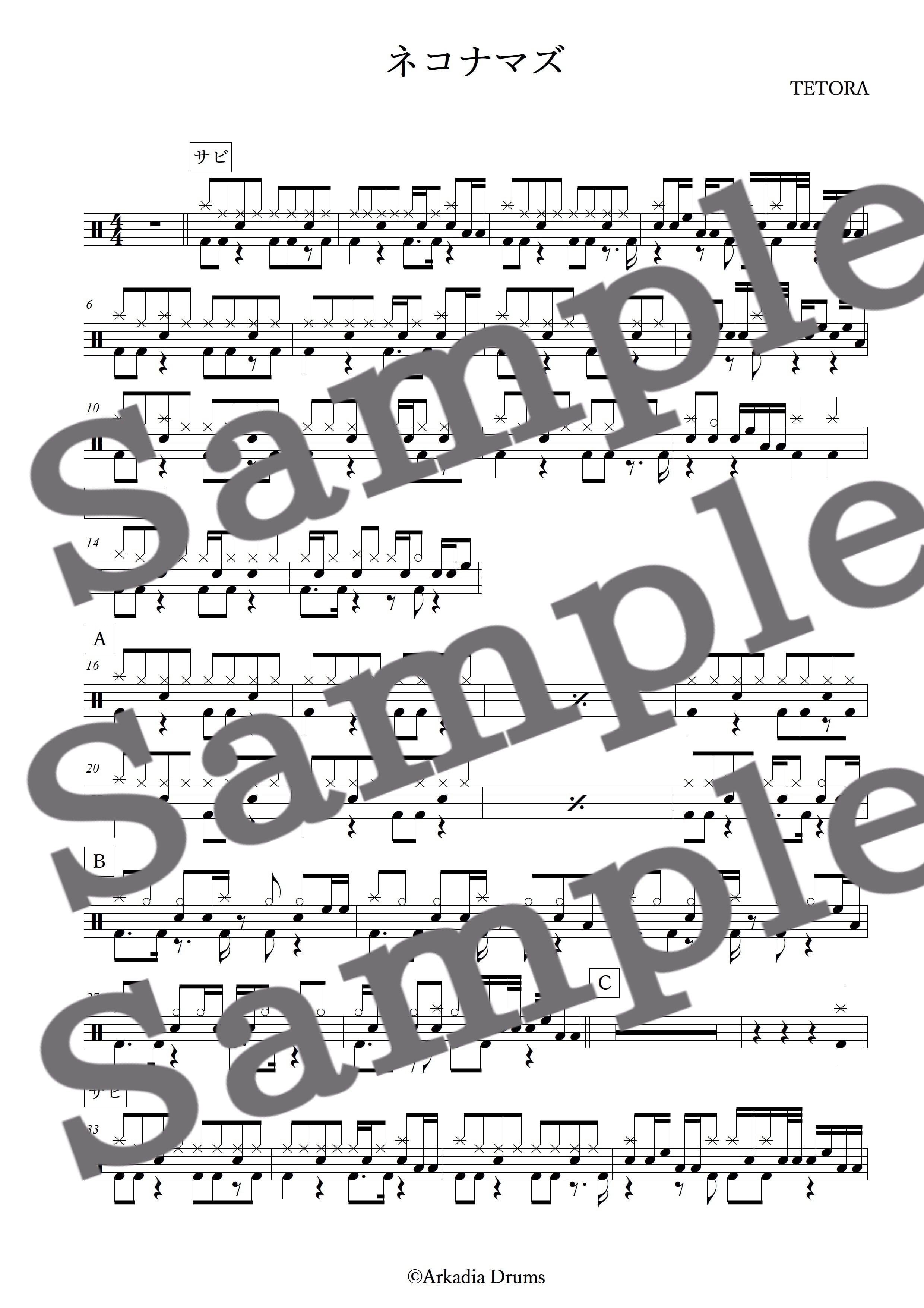 ドラムのみの楽譜であること、また大きめのセクションマークを配置しているので、演奏中でも迷いにくいのが特徴です。