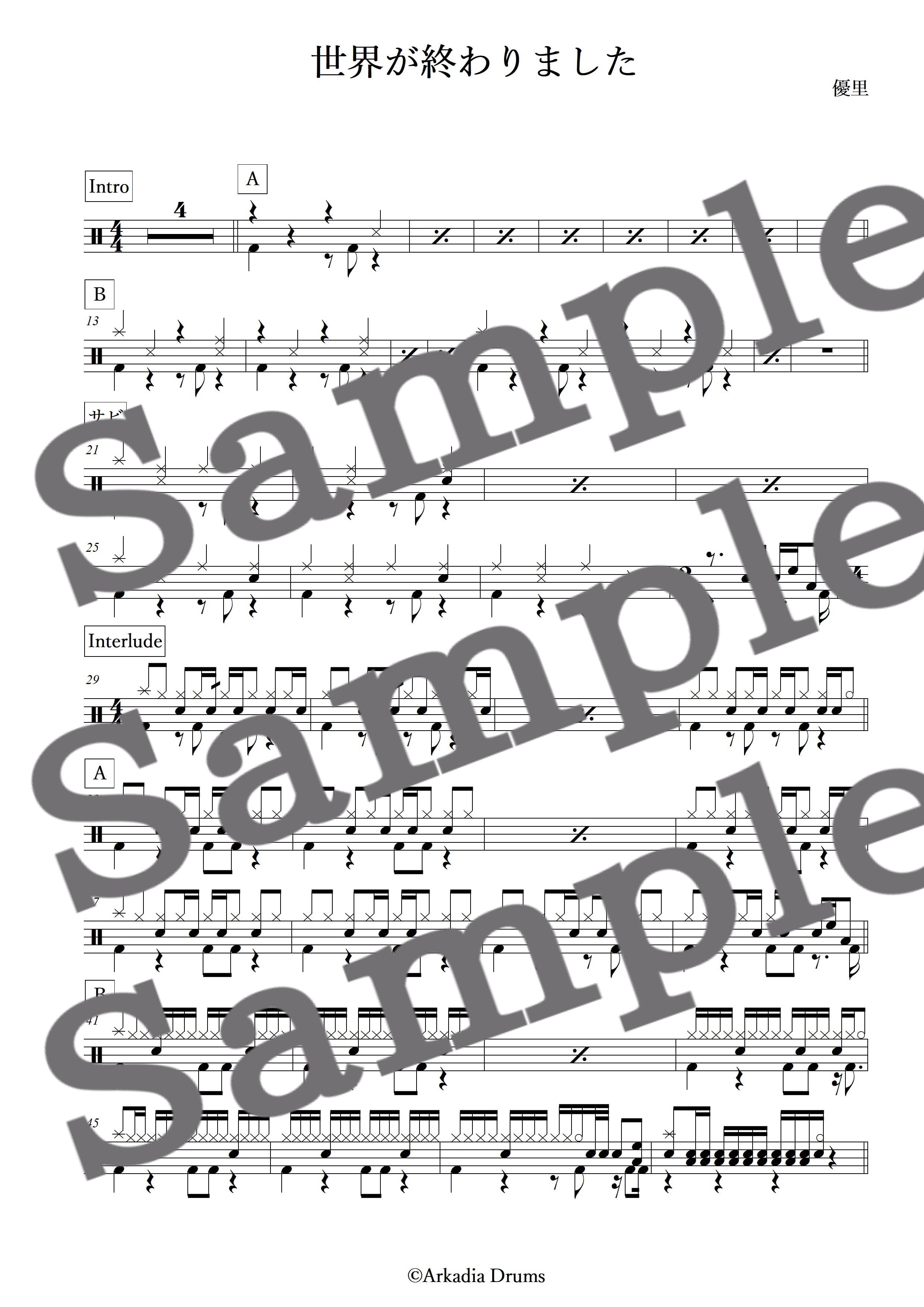 ドラムのみの楽譜であること、また大きめのセクションマークを配置しているので、演奏中でも迷いにくいのが特徴です。