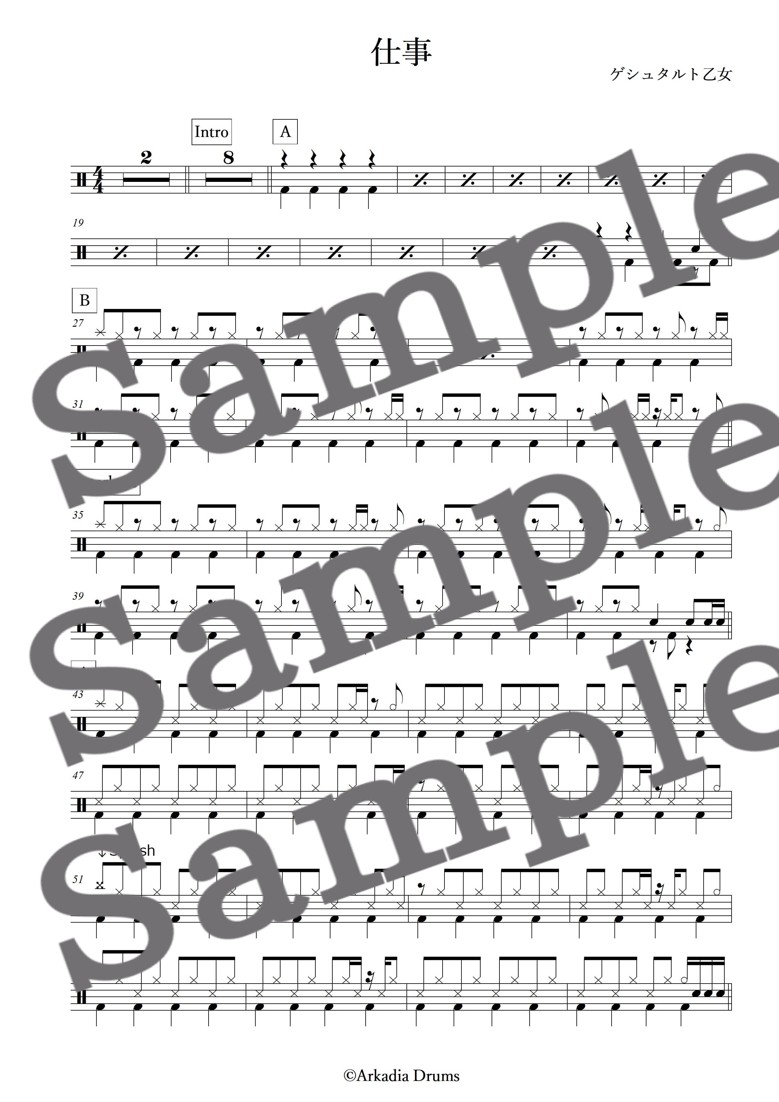 仕事(ゲシュタルト乙女)のドラム楽譜です。