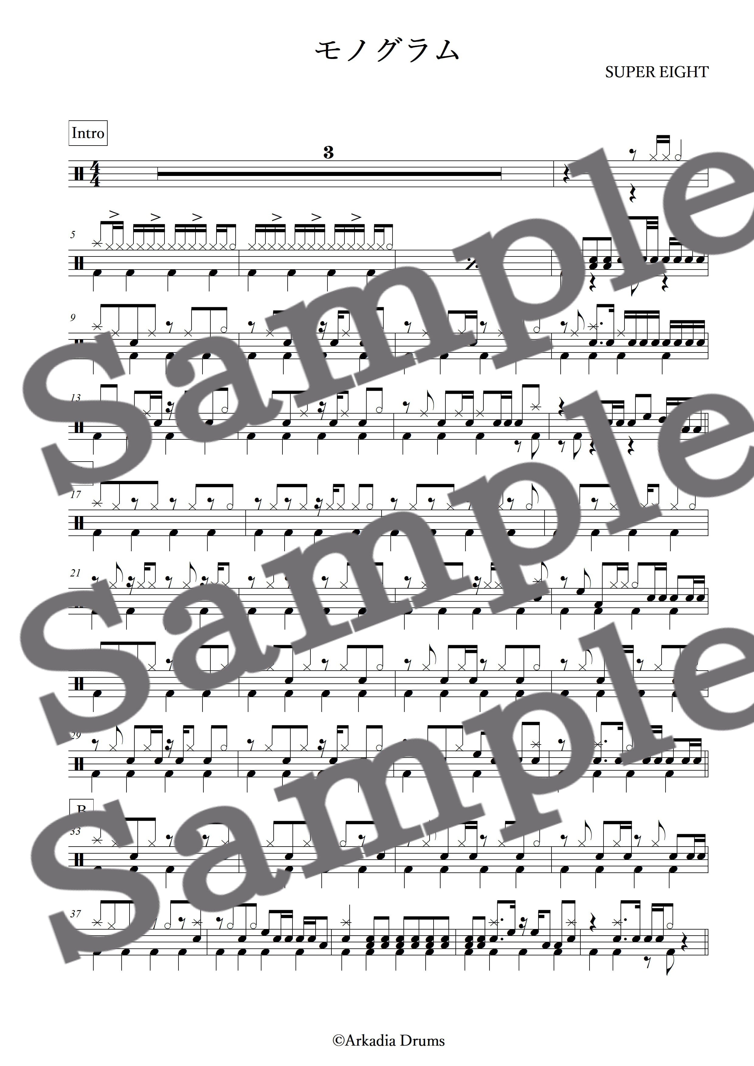 モノグラム(SUPER EIGHT)のドラム楽譜です。