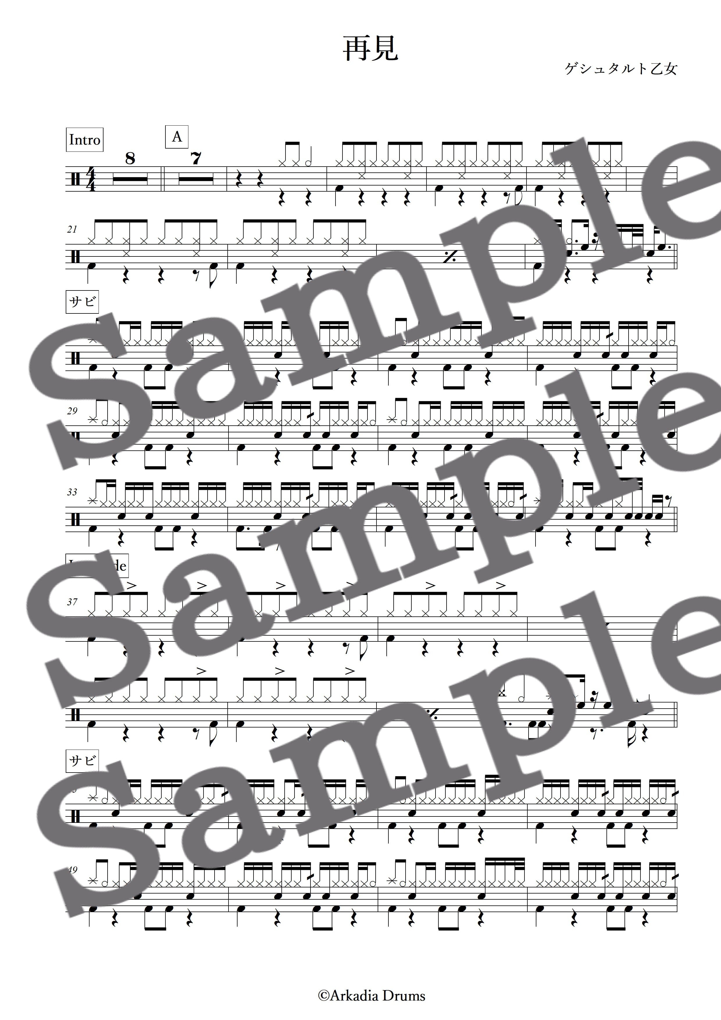 再見(ゲシュタルト乙女)のドラム楽譜です。