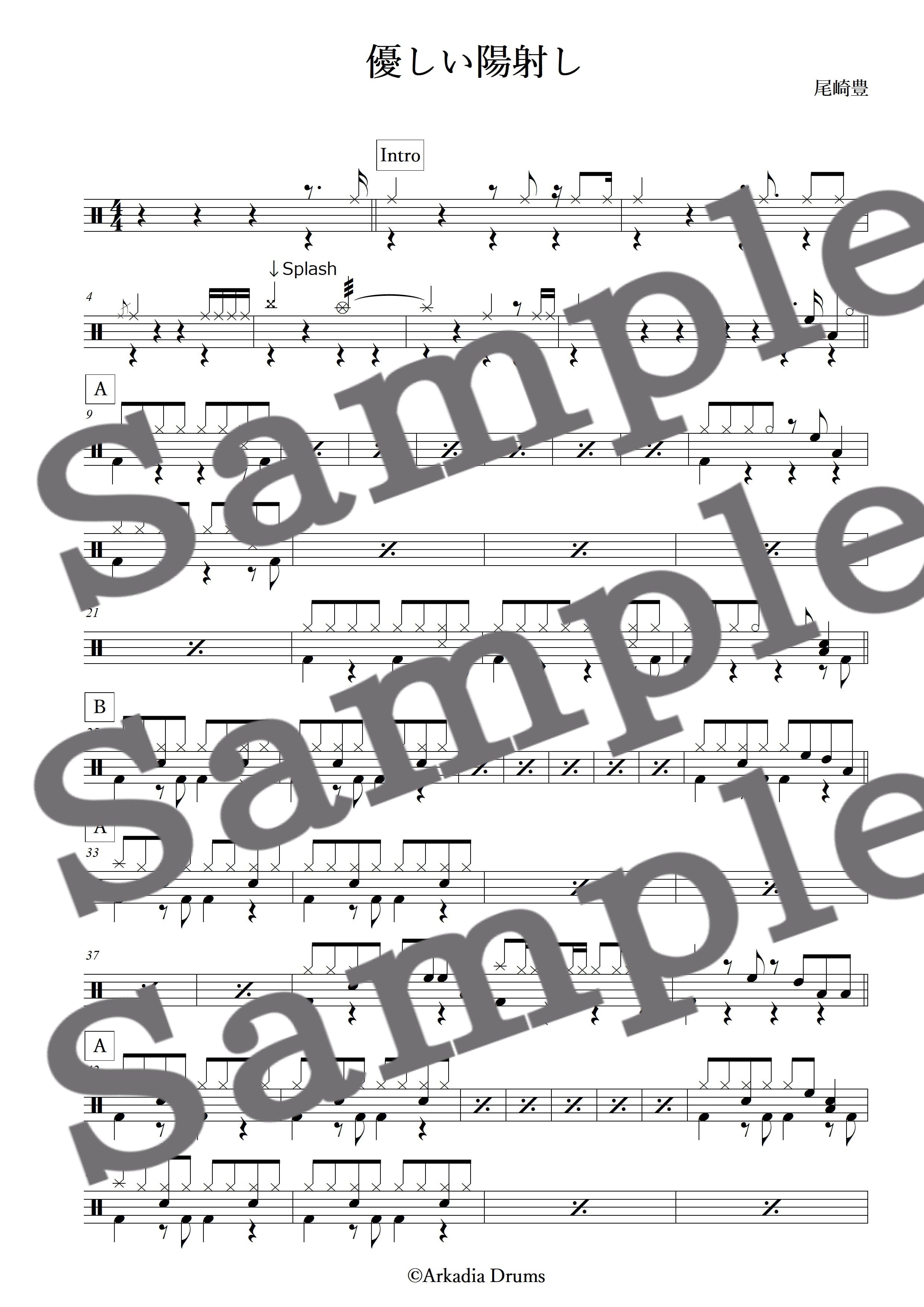 優しい陽射し(尾崎豊)のドラム楽譜です。