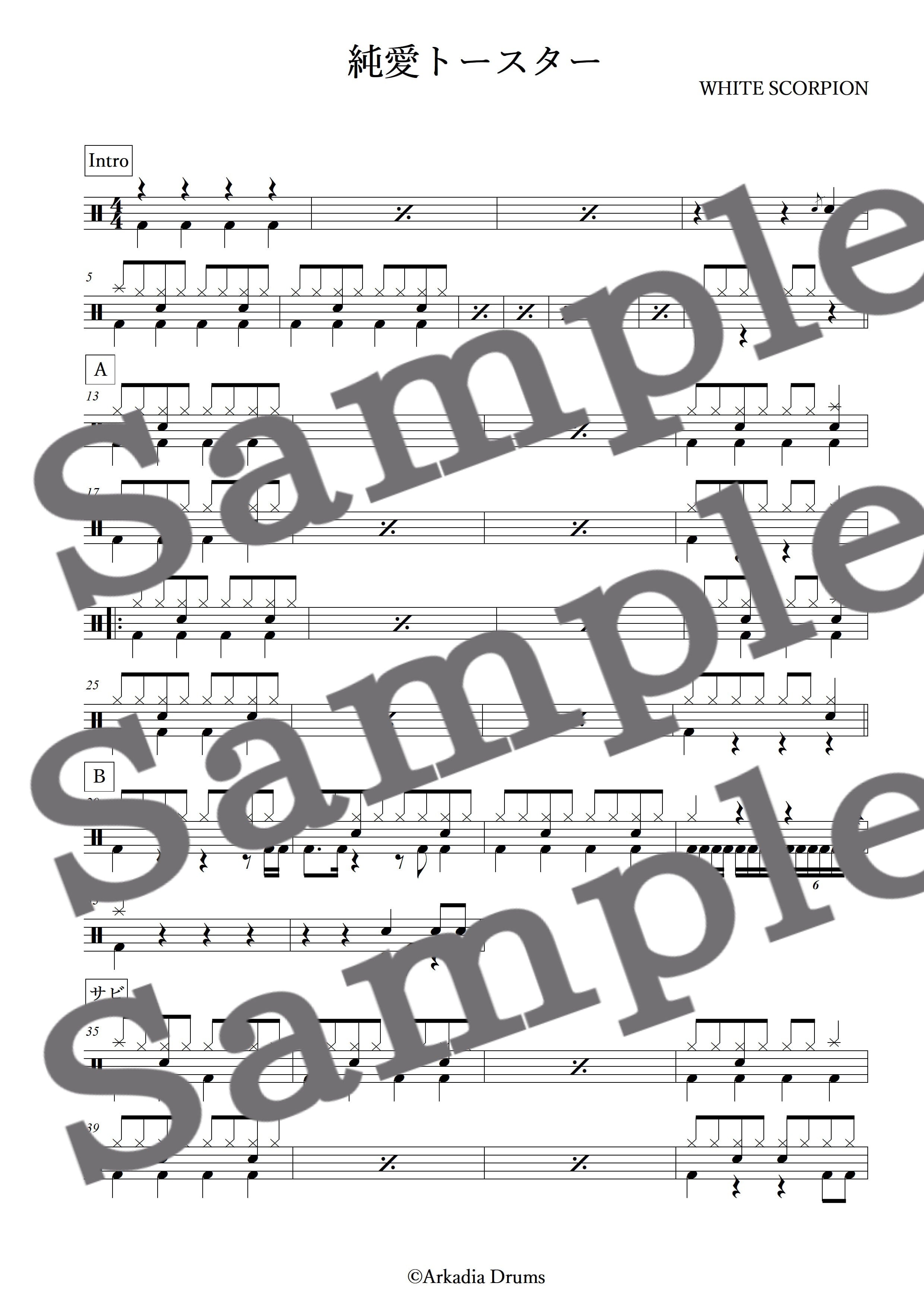 純愛トースター(WHITE SCORPION)のドラム楽譜です。