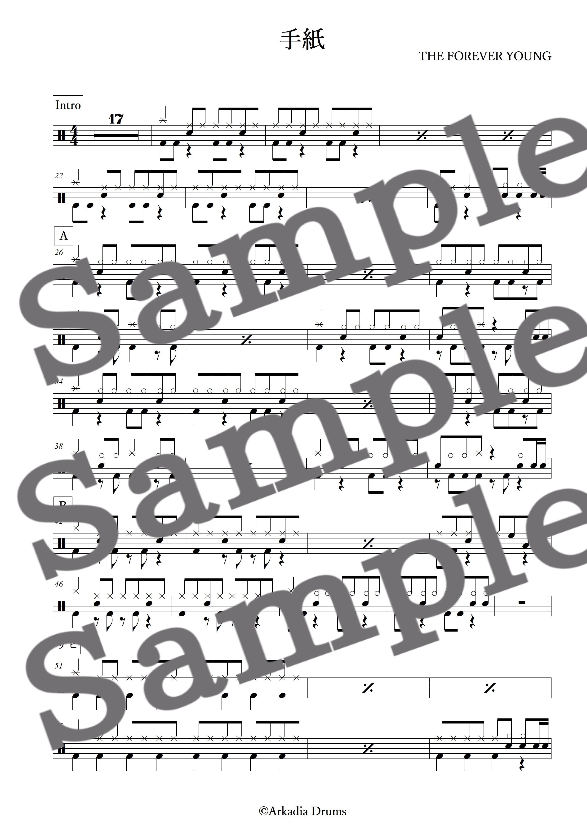 手紙(THE FOREVER YOUNG)のドラム楽譜です。