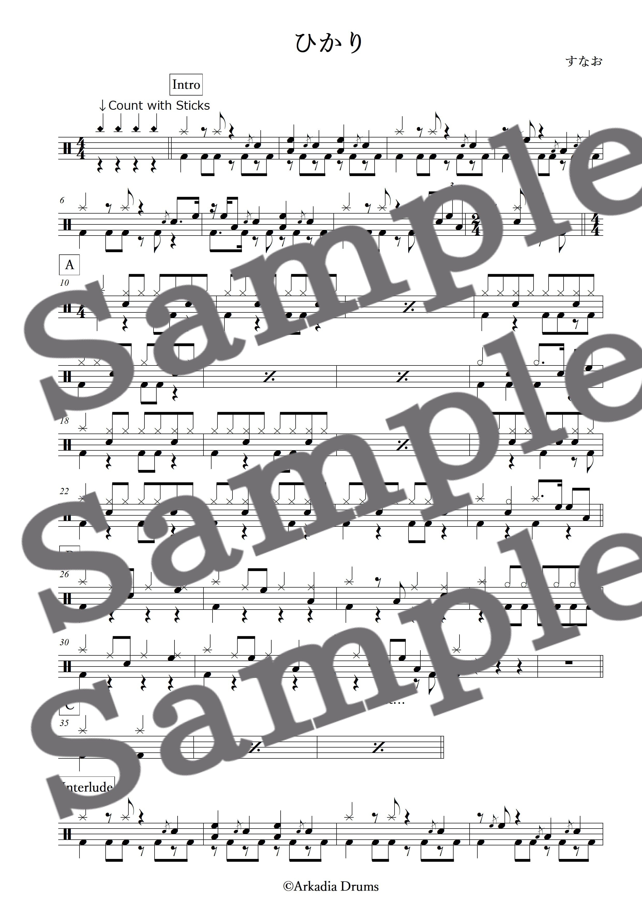 ひかり(すなお)のドラム楽譜です。