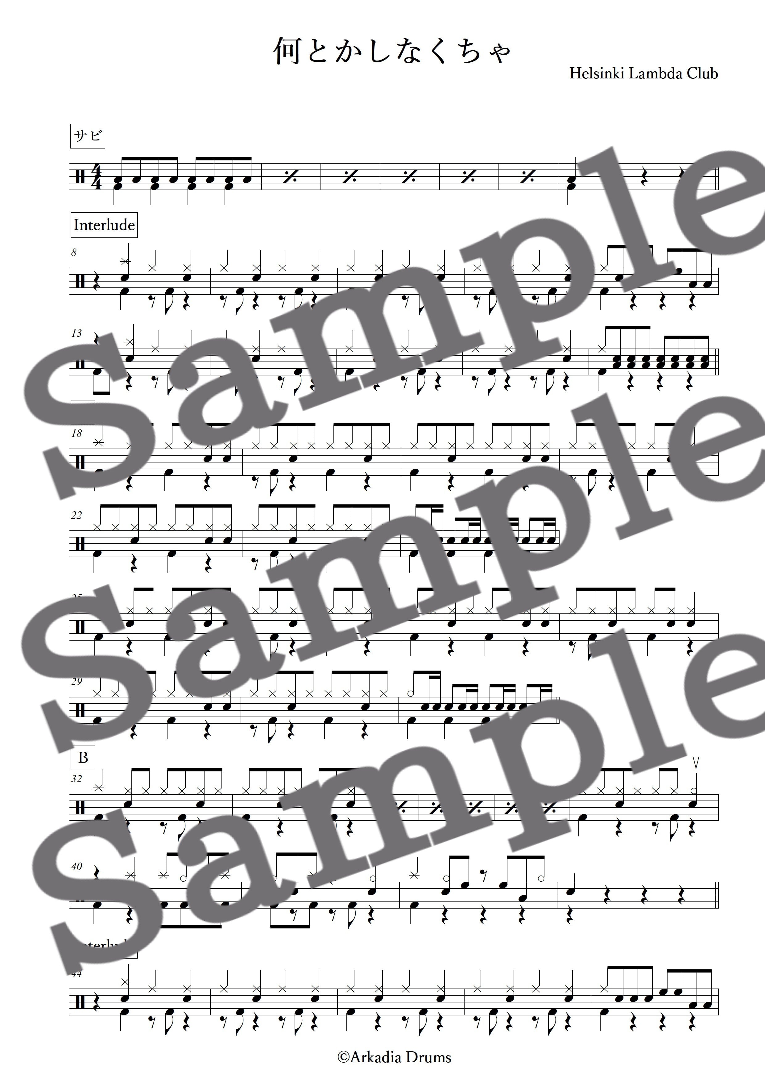何とかしなくちゃ(Helsinki Lambda Club)のドラム楽譜です。