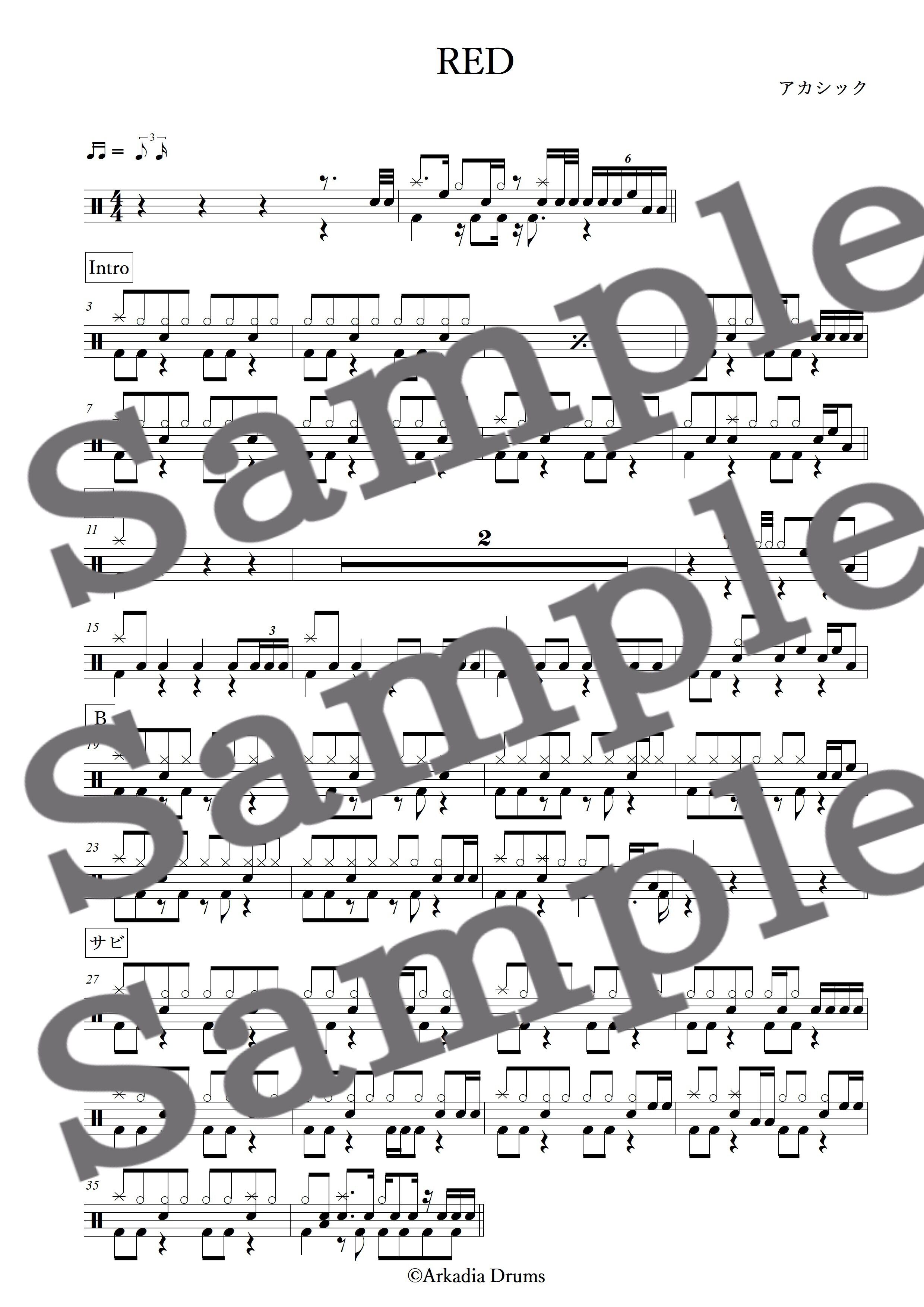 ドラムのみの楽譜であること、また大きめのセクションマークを配置しているので、演奏中でも迷いにくいのが特徴です。