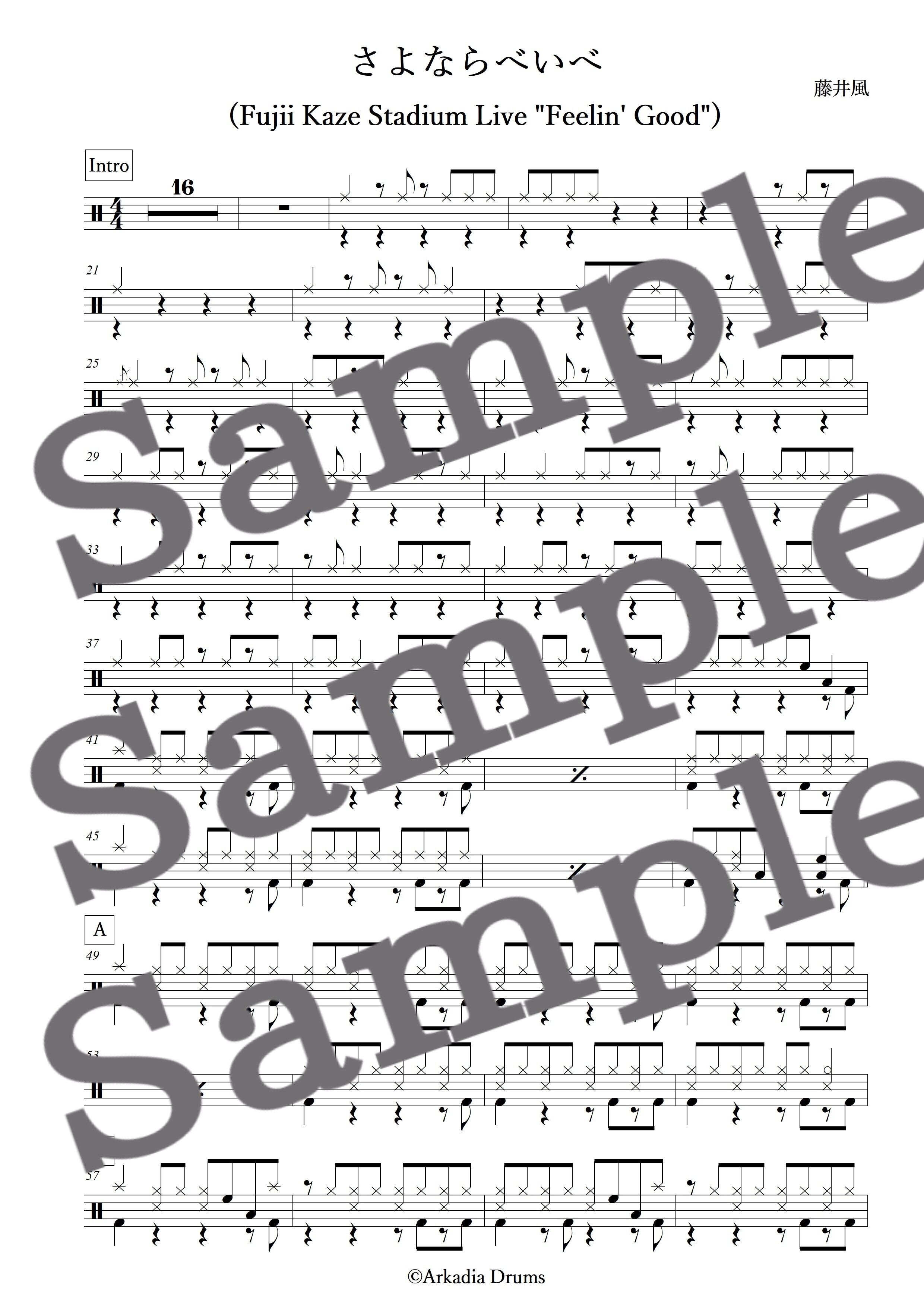 さよならべいべ (Fujii Kaze Stadium Live "Feelin' Good")(藤井風)のドラム楽譜です。