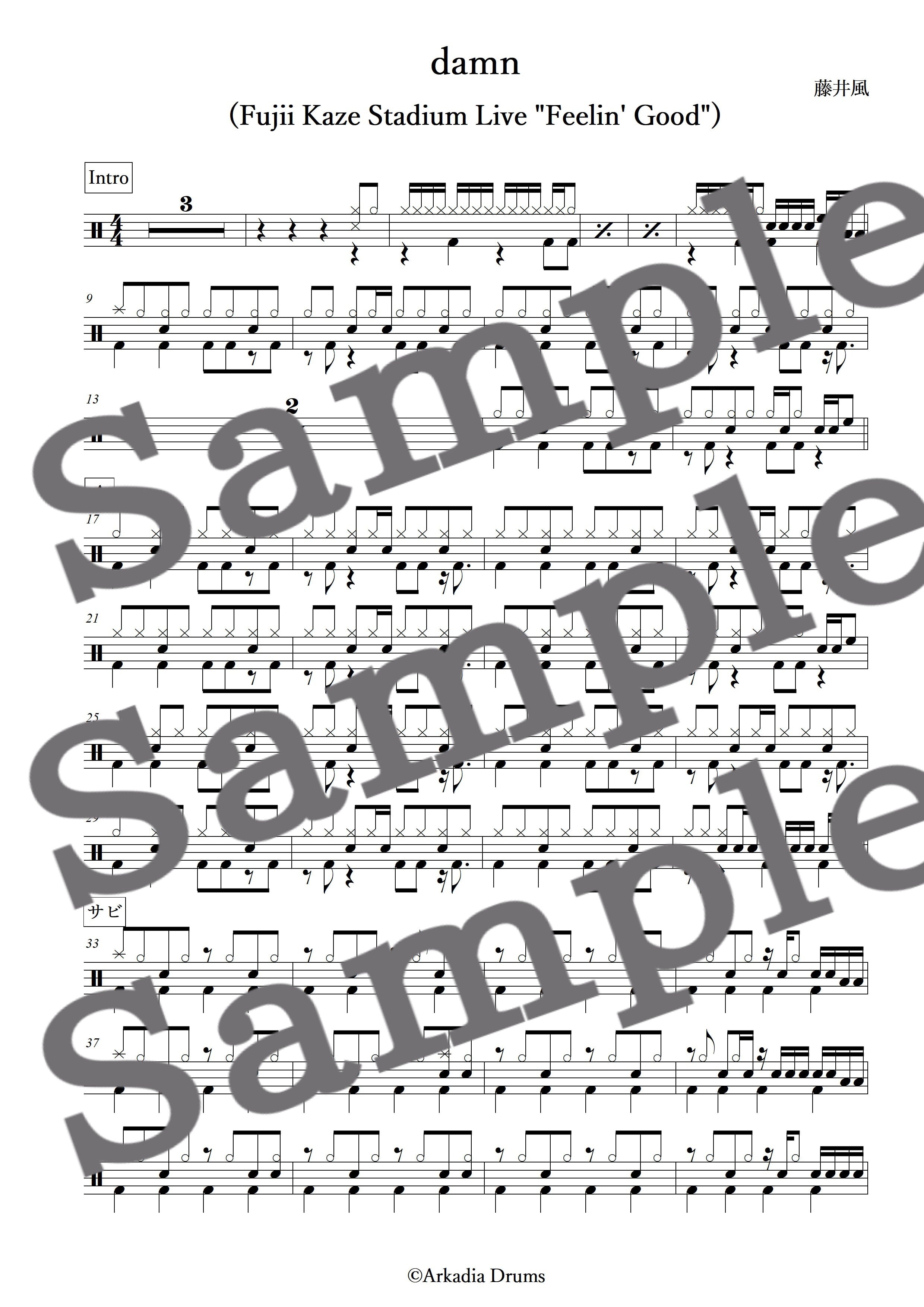 damn (Fujii Kaze Stadium Live "Feelin' Good")(藤井風)のドラム楽譜です。