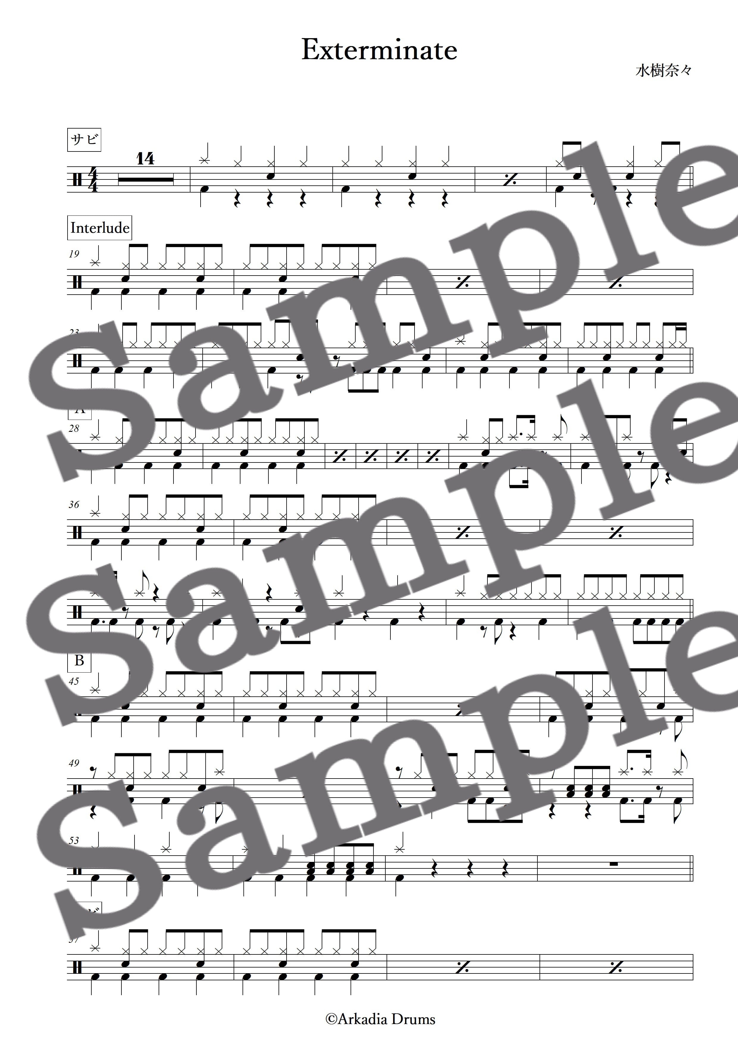Exterminate(水樹奈々)のドラム楽譜です。
