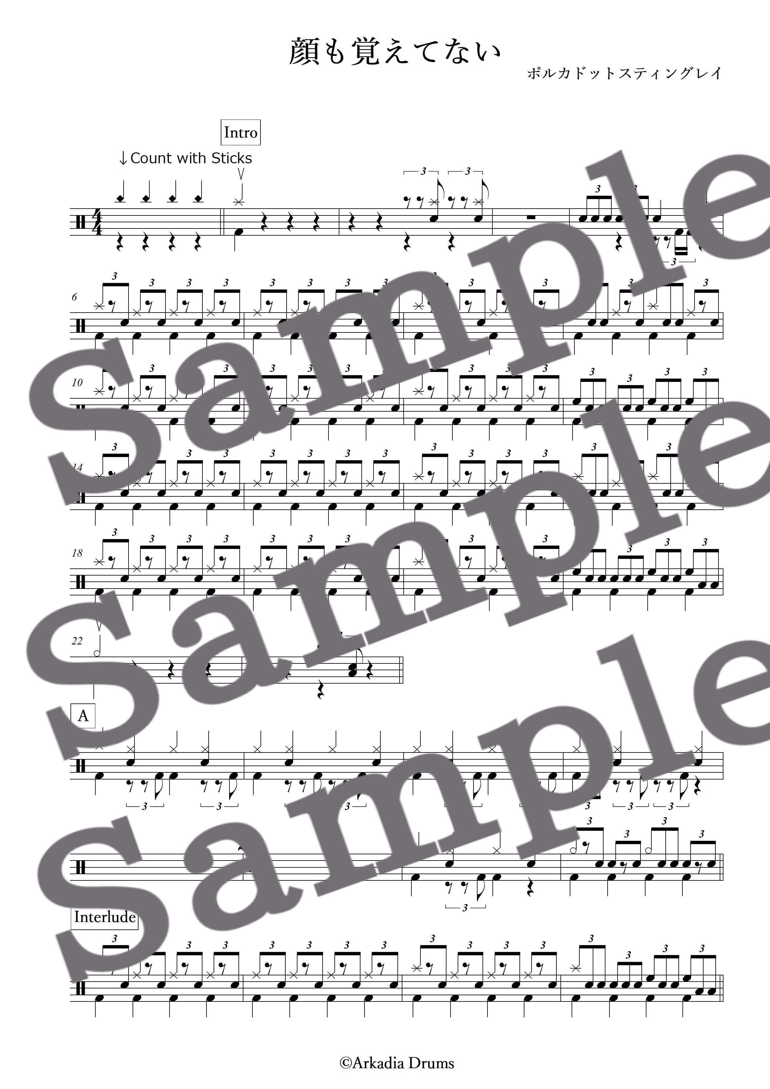 顔も覚えてない(ポルカドットスティングレイ)のドラム楽譜です。