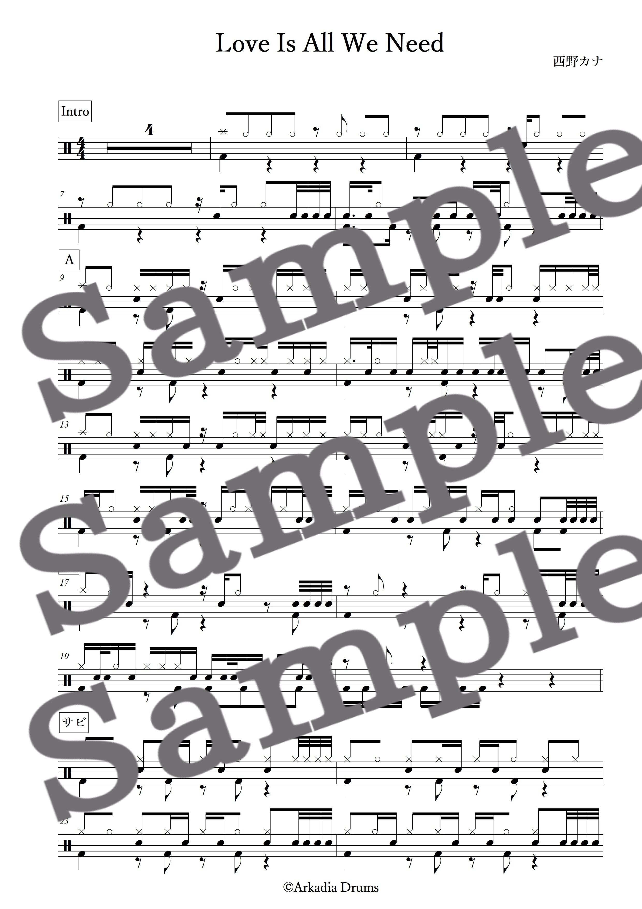 Love Is All We Need(西野カナ)のドラム楽譜です。