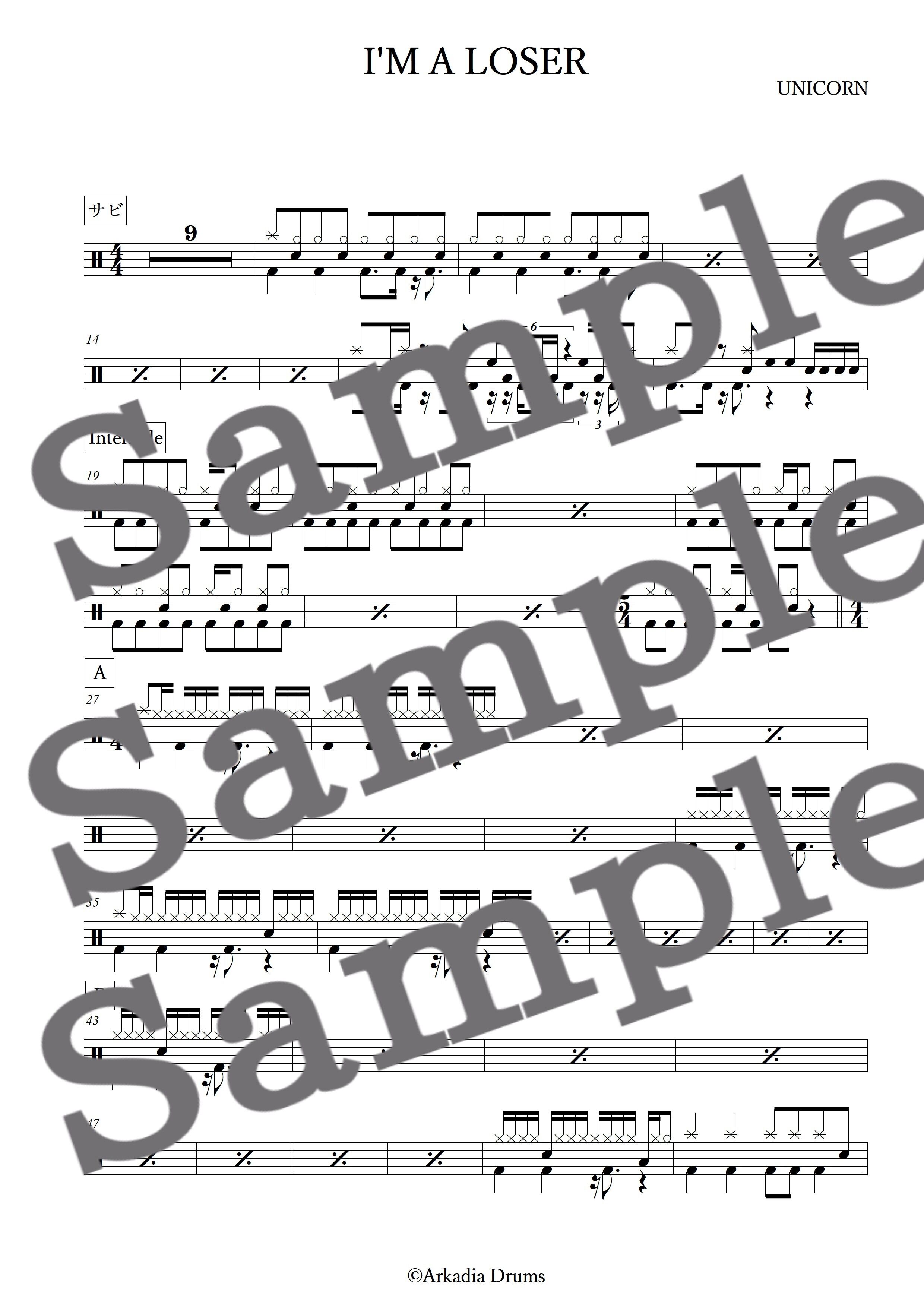 I'M A LOSER(UNICORN)のドラム楽譜です。