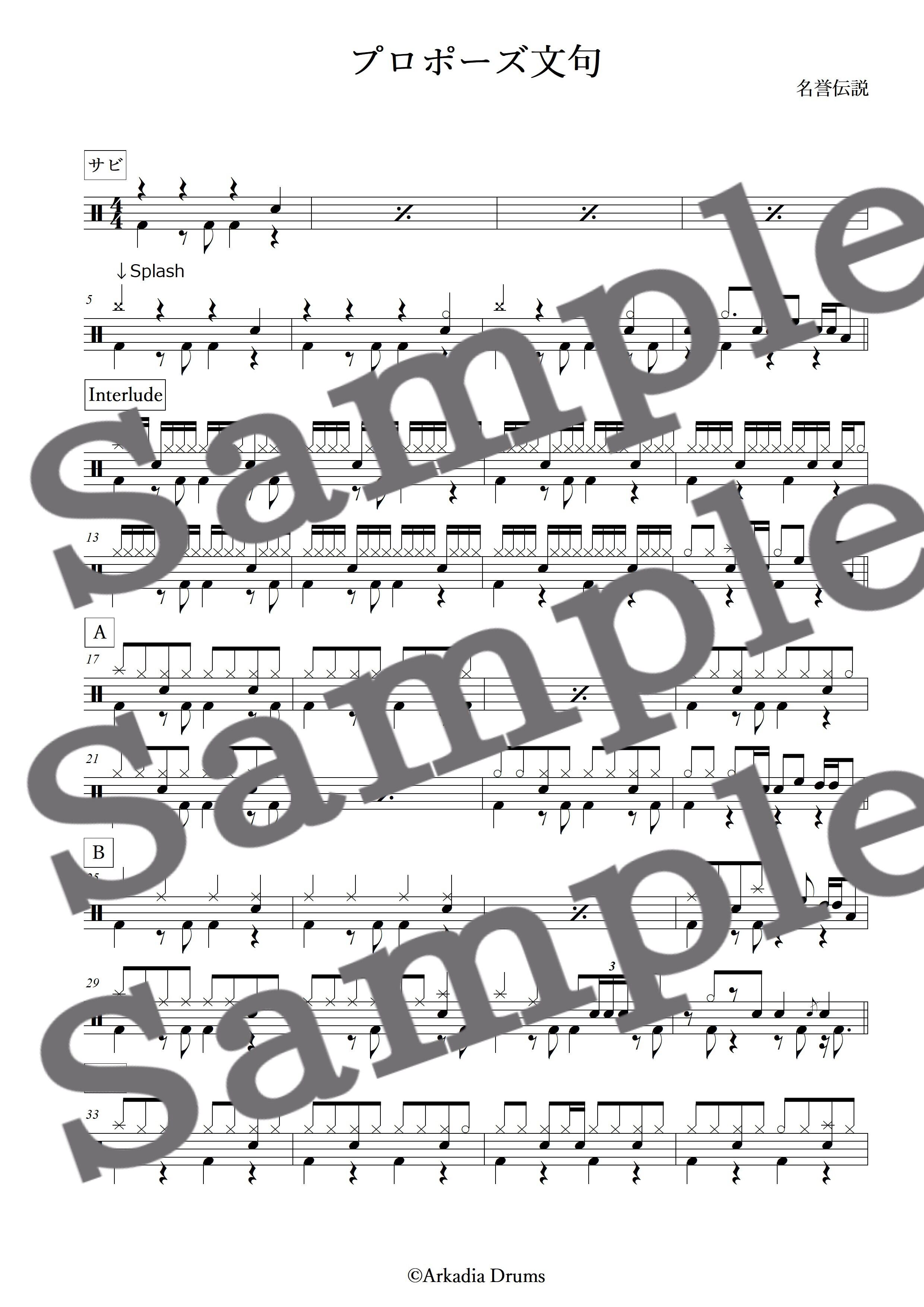 プロポーズ文句(名誉伝説)のドラム楽譜です。