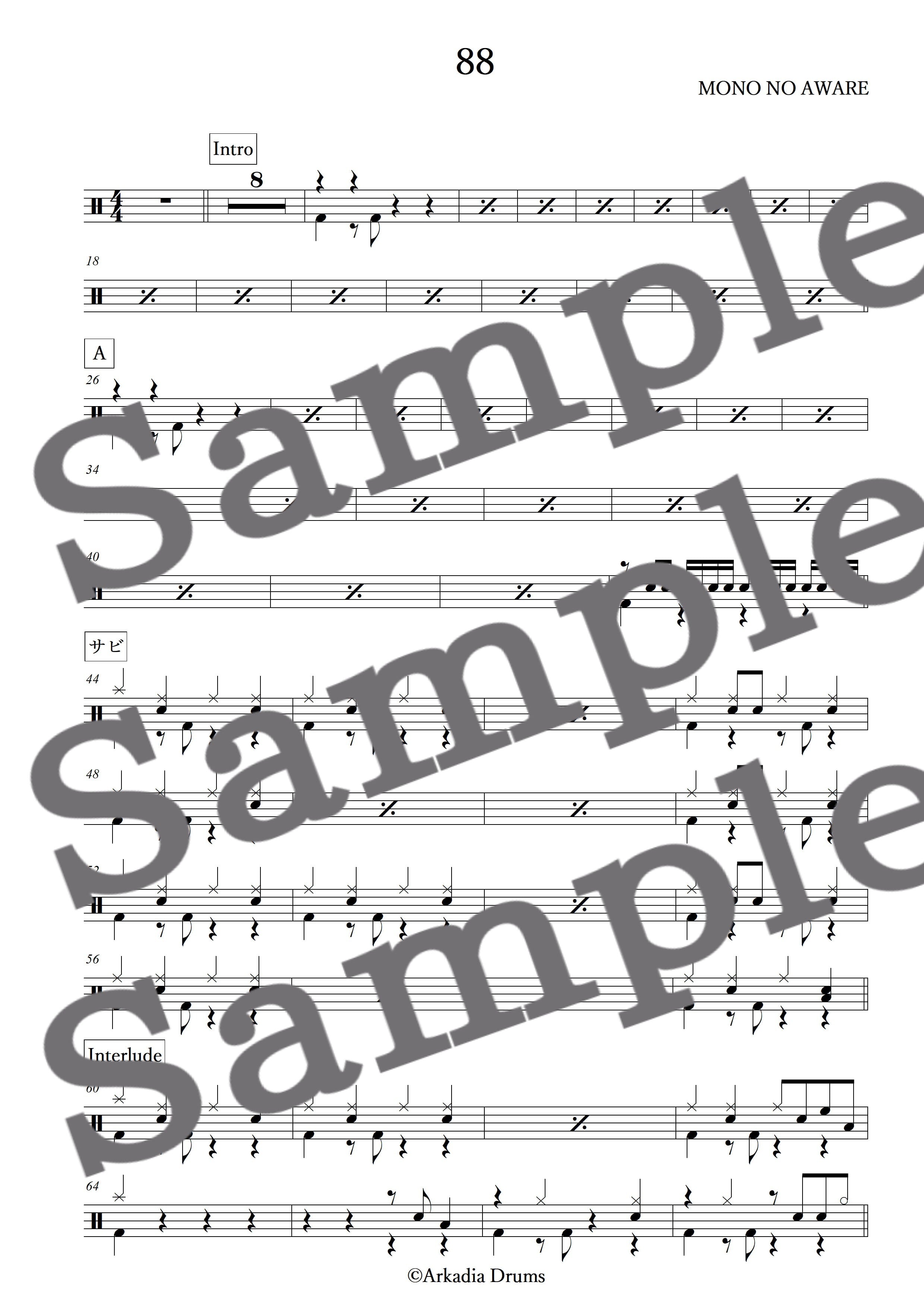 ドラムのみの楽譜であること、また大きめのセクションマークを配置しているので、演奏中でも迷いにくいのが特徴です。