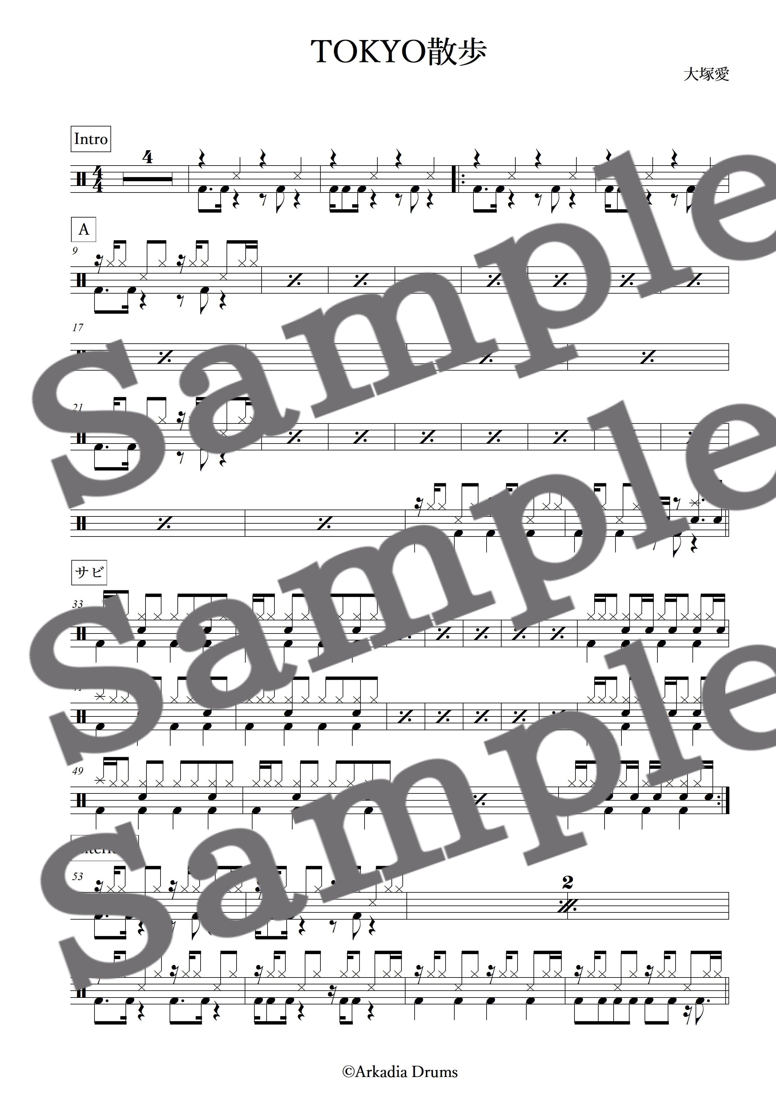 TOKYO散歩(大塚愛)のドラム楽譜です。