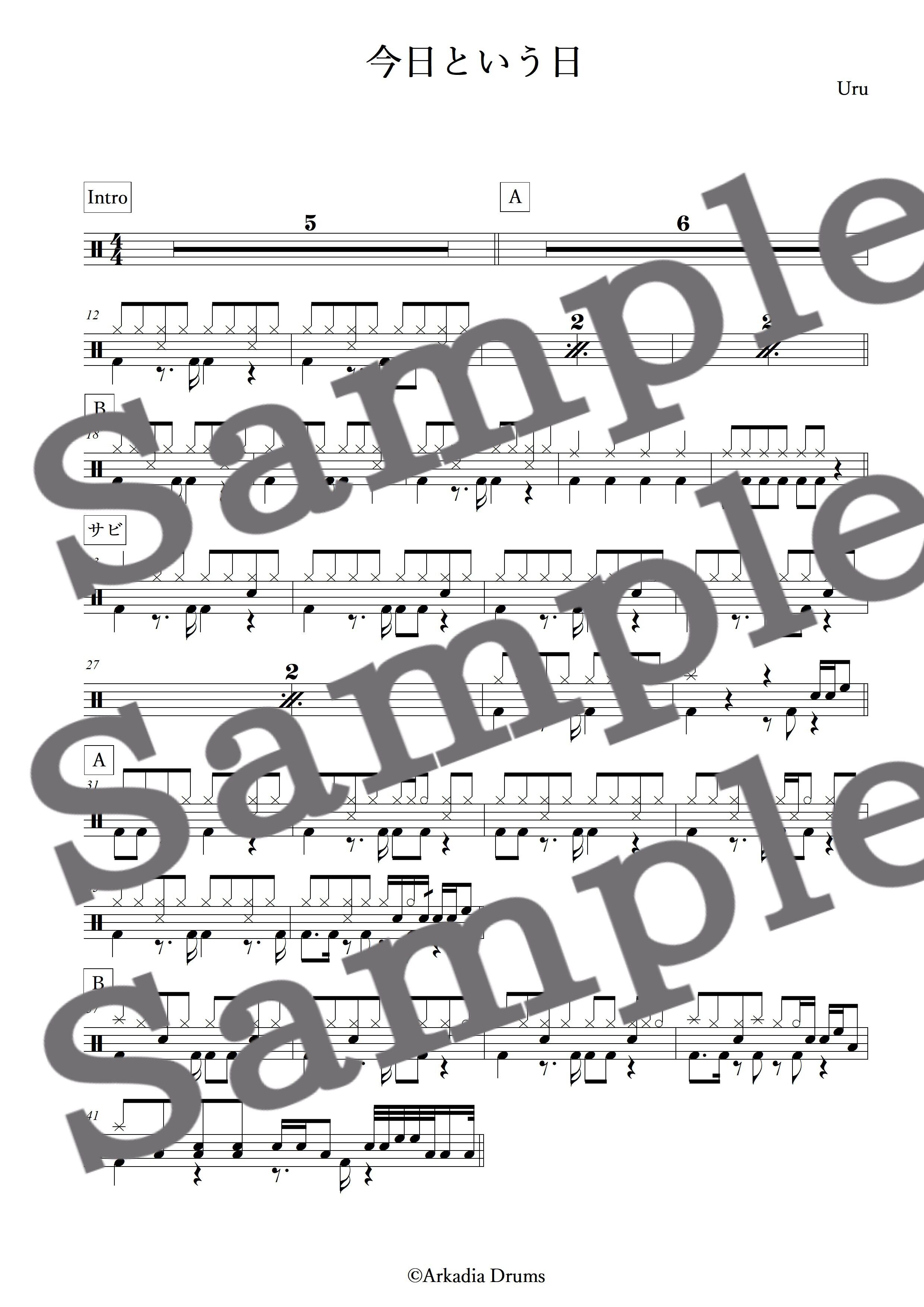 今日という日(Uru)のドラム楽譜です。