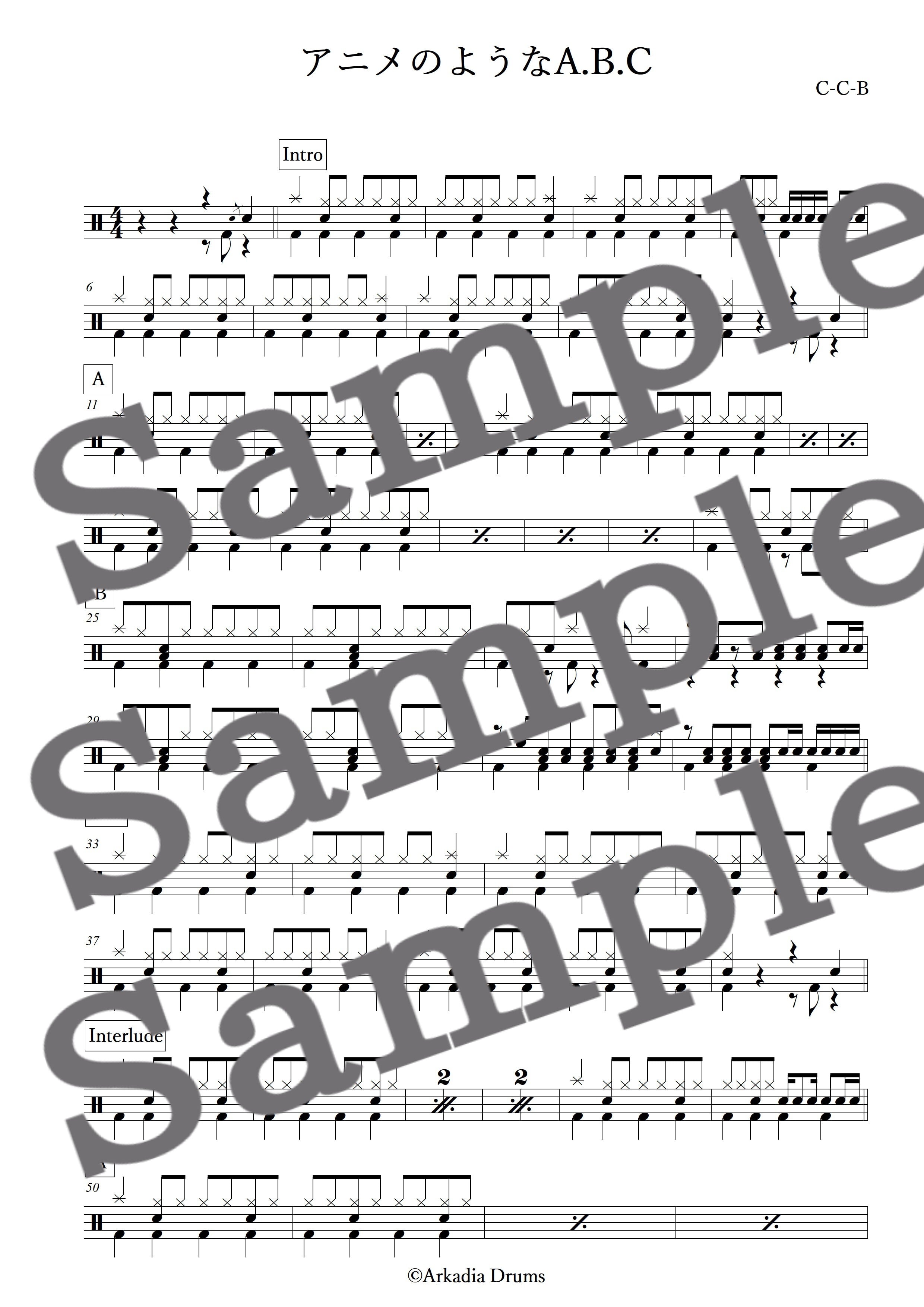 アニメのようなA.B.C(C-C-B)のドラム楽譜です。