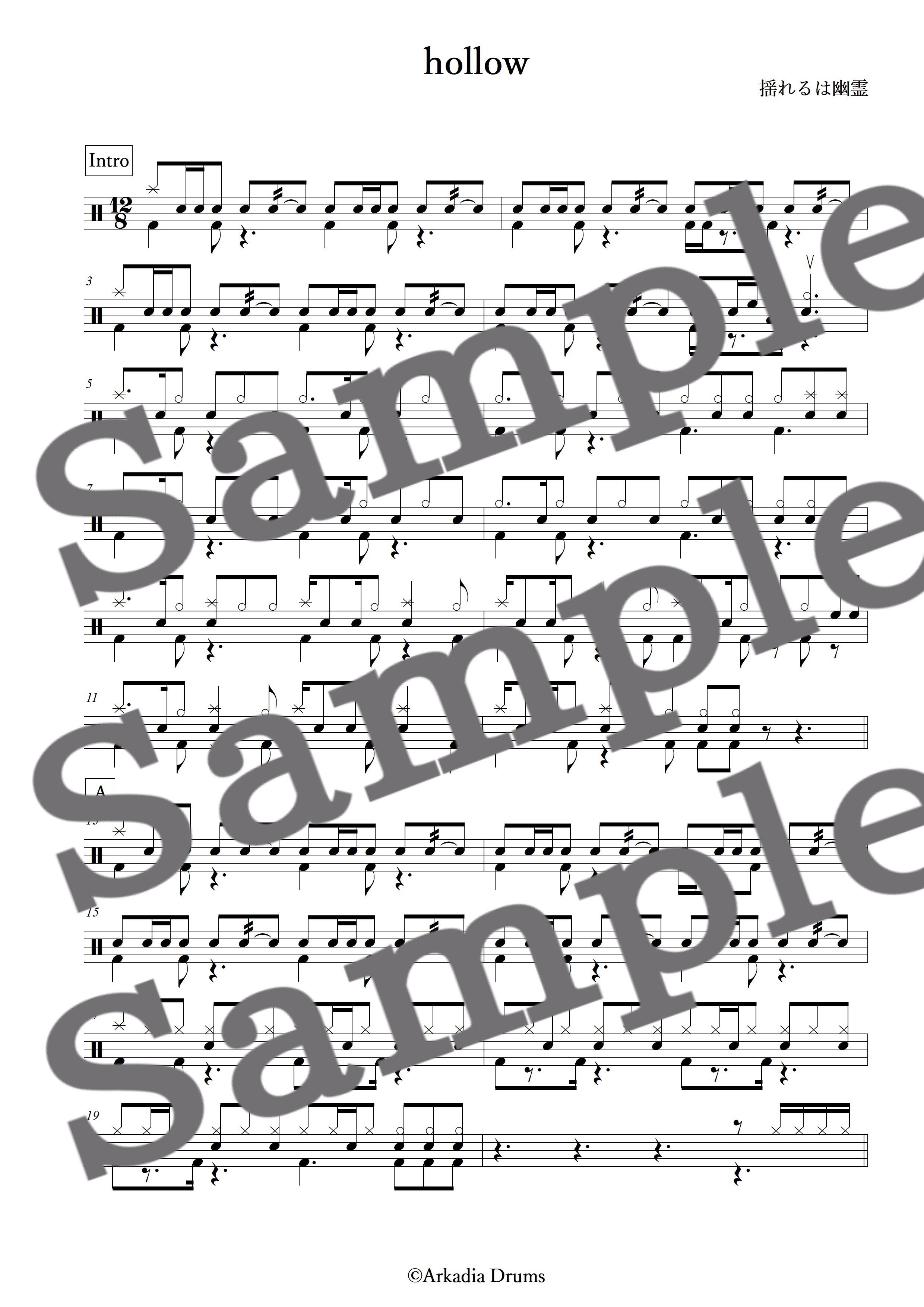 hollow(揺れるは幽霊)のドラム楽譜です。