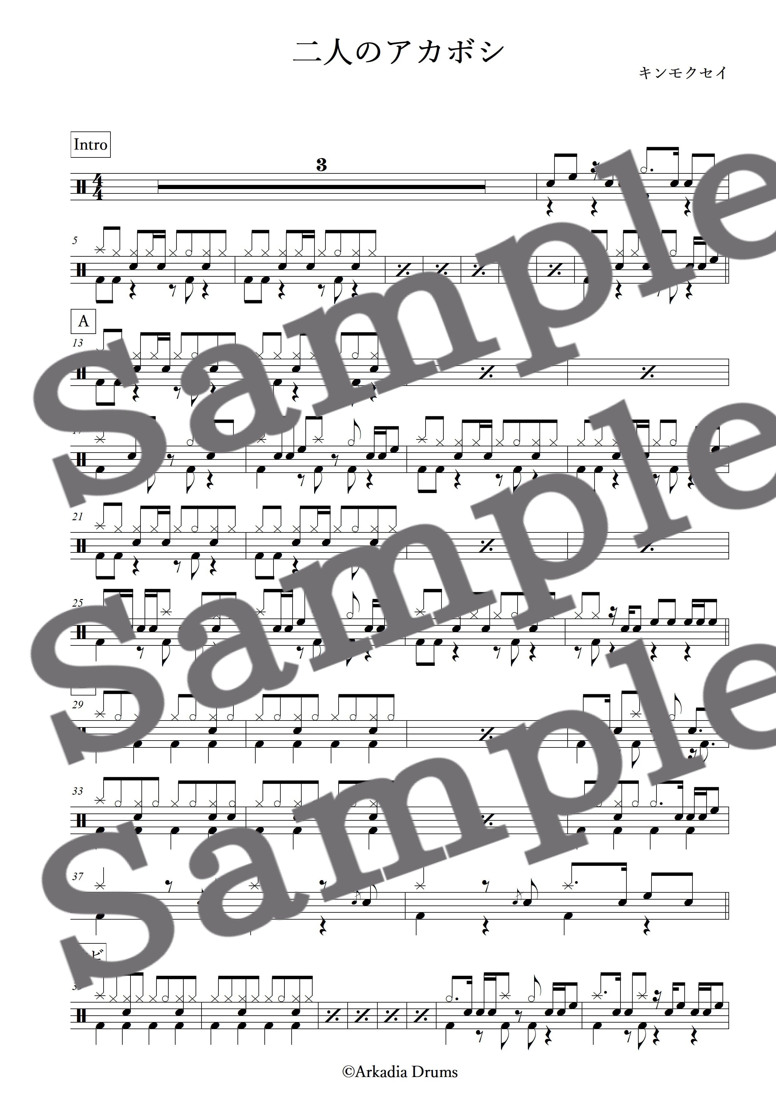 二人のアカボシ(キンモクセイ)のドラム楽譜です。