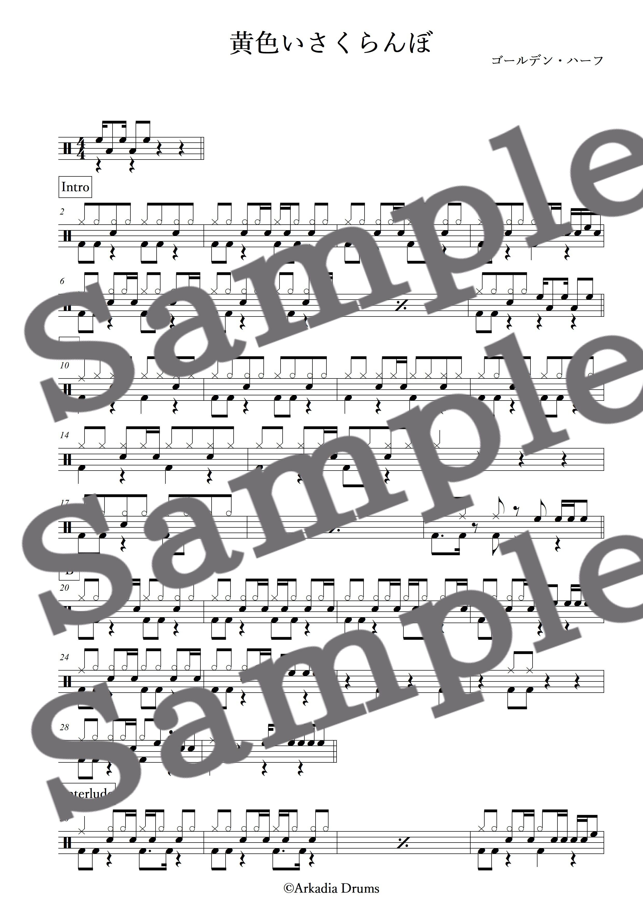 黄色いさくらんぼ(ゴールデン・ハーフ)のドラム楽譜です。