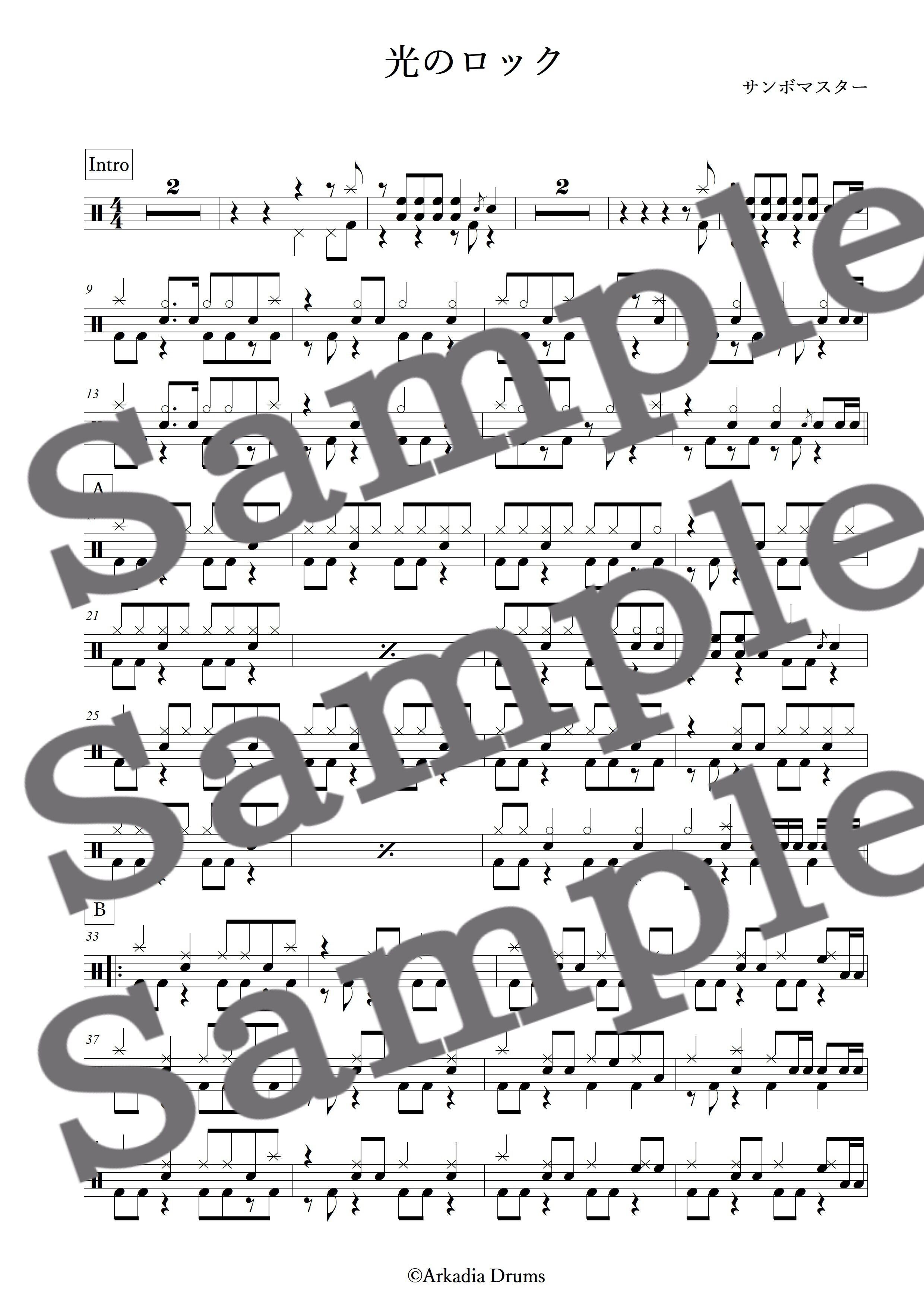 ドラムのみの楽譜であること、また大きめのセクションマークを配置しているので、演奏中でも迷いにくいのが特徴です。