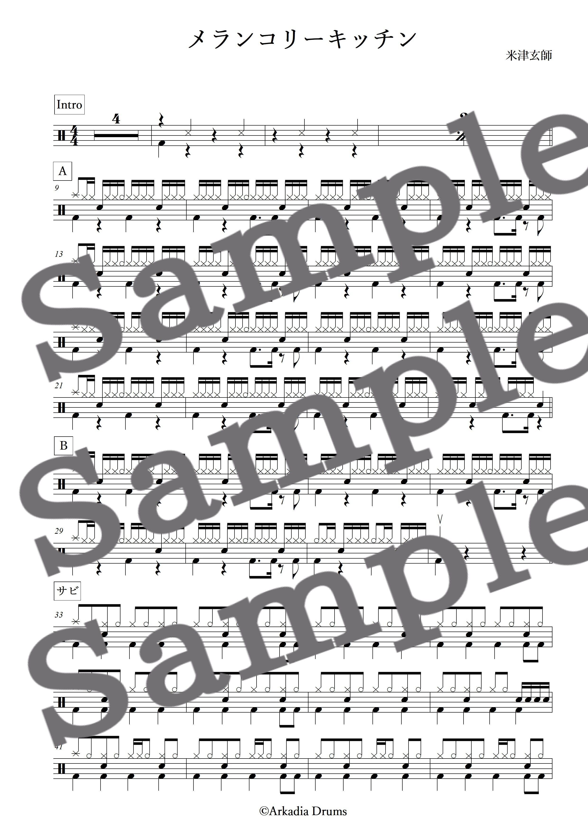 メランコリーキッチン(米津玄師)のドラム楽譜です。