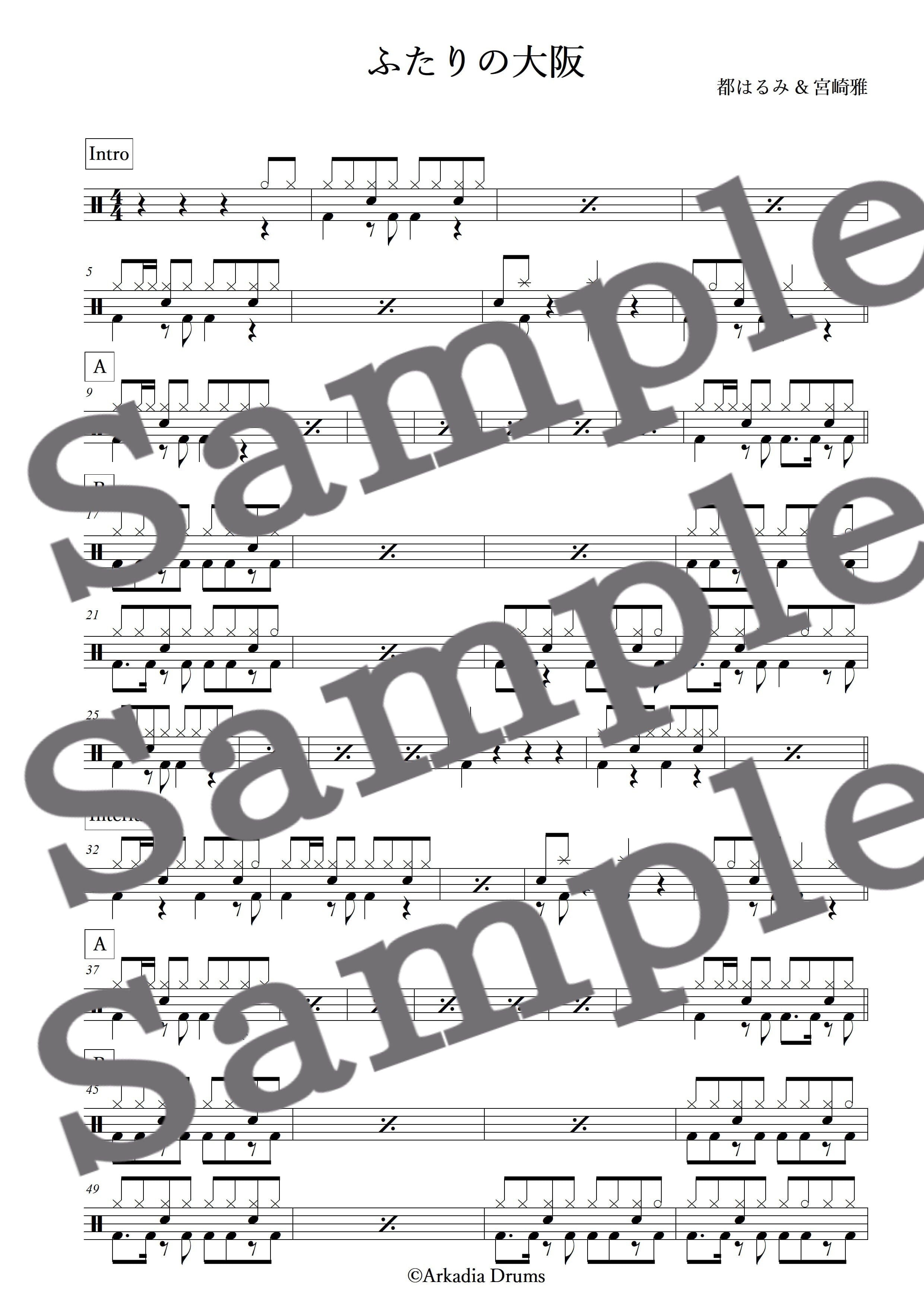 ふたりの大阪(都はるみ & 宮崎雅)のドラム楽譜です。