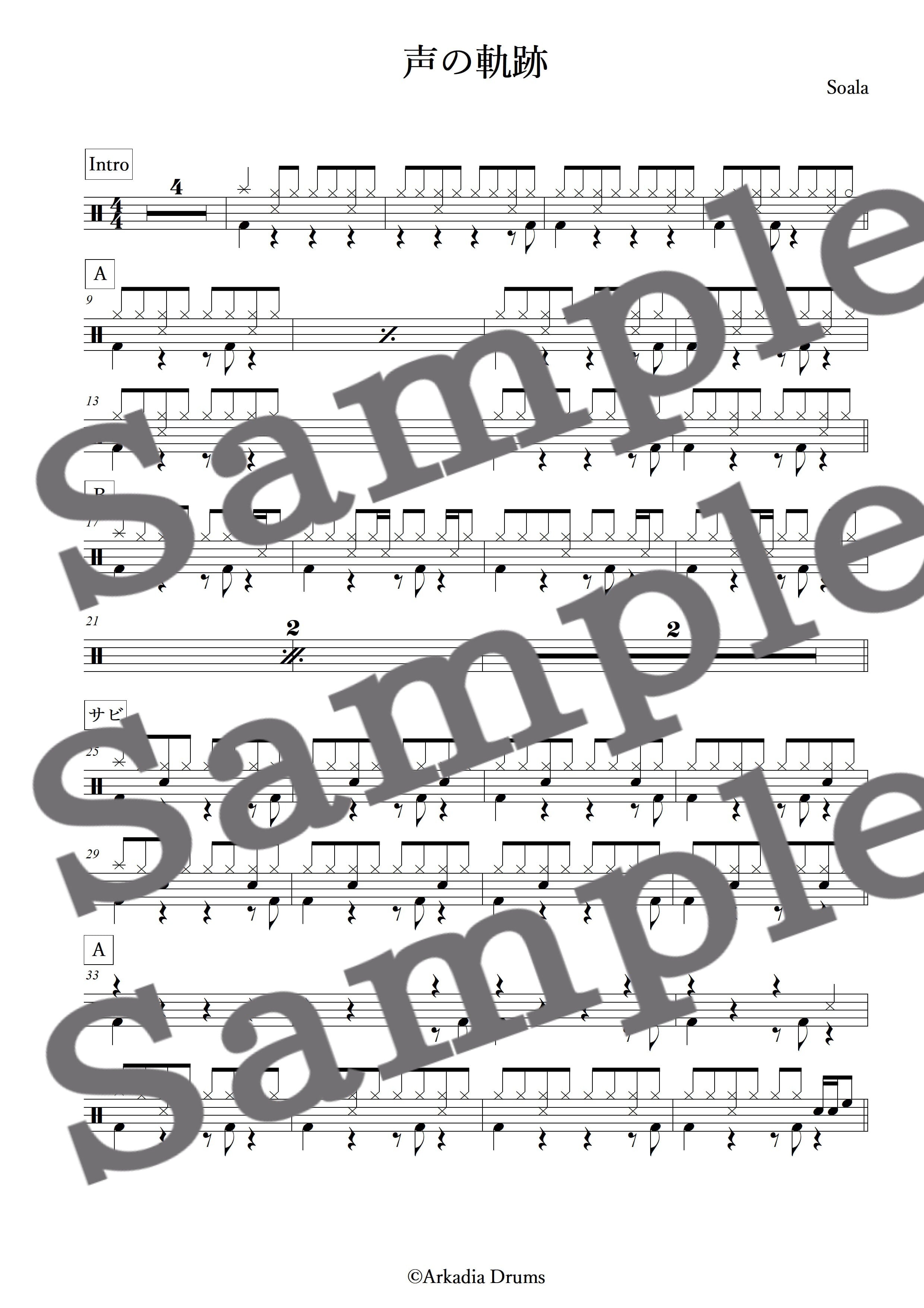 声の軌跡(Soala)簡単アレンジバージョンのドラム楽譜です。