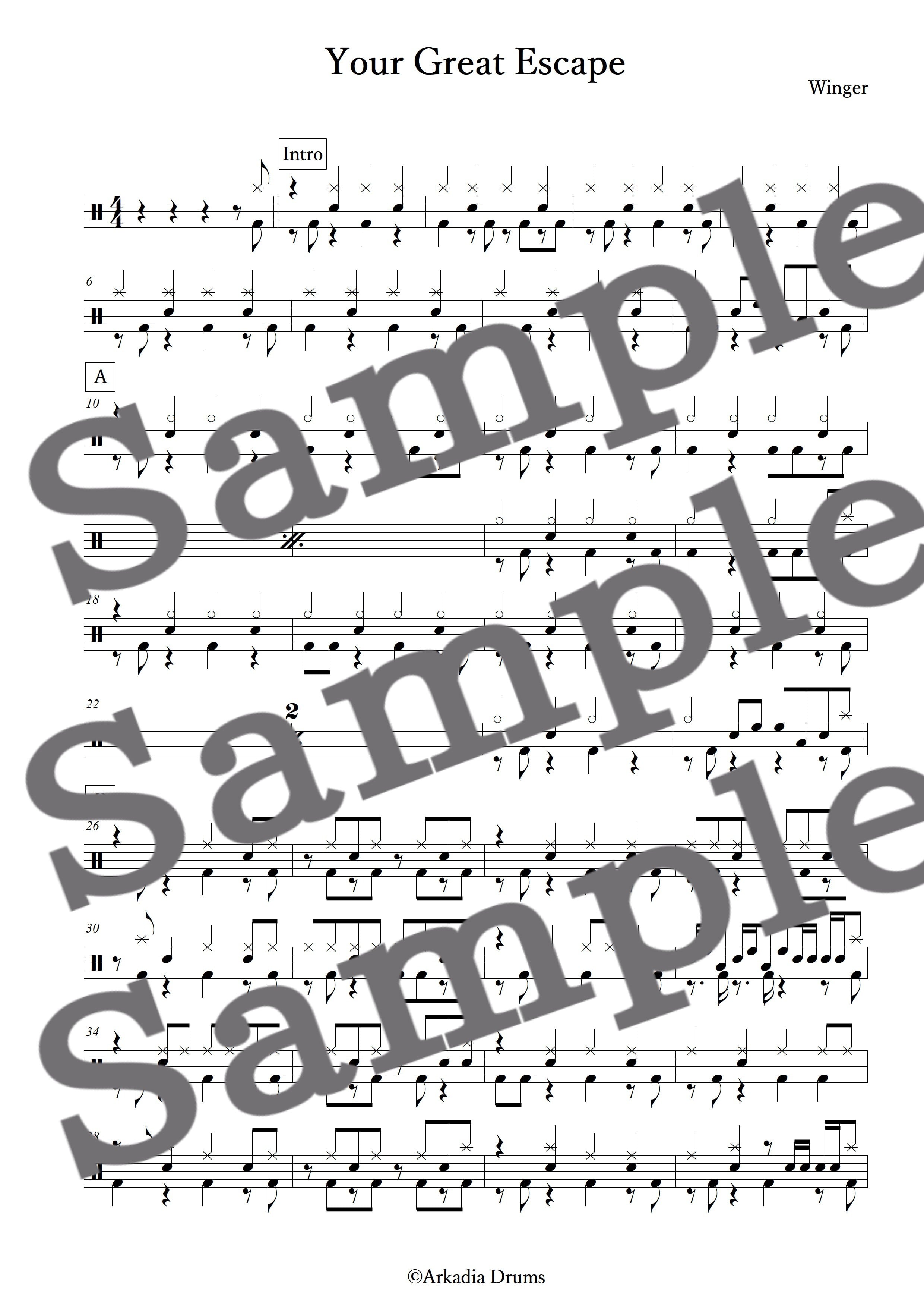 Your Great Escape(Winger)のドラム楽譜です。