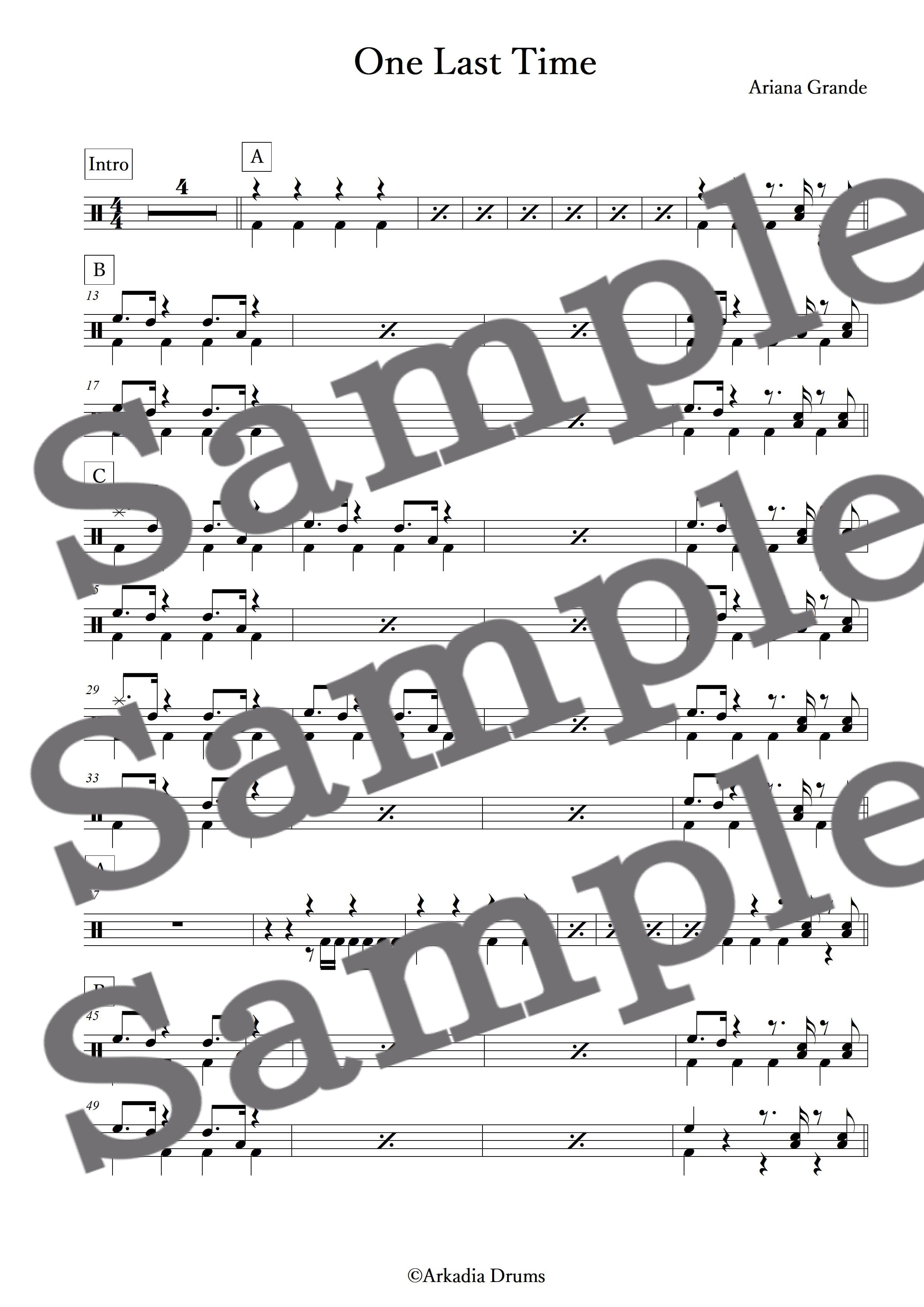 One Last Time(Ariana Grande)のドラム楽譜です。