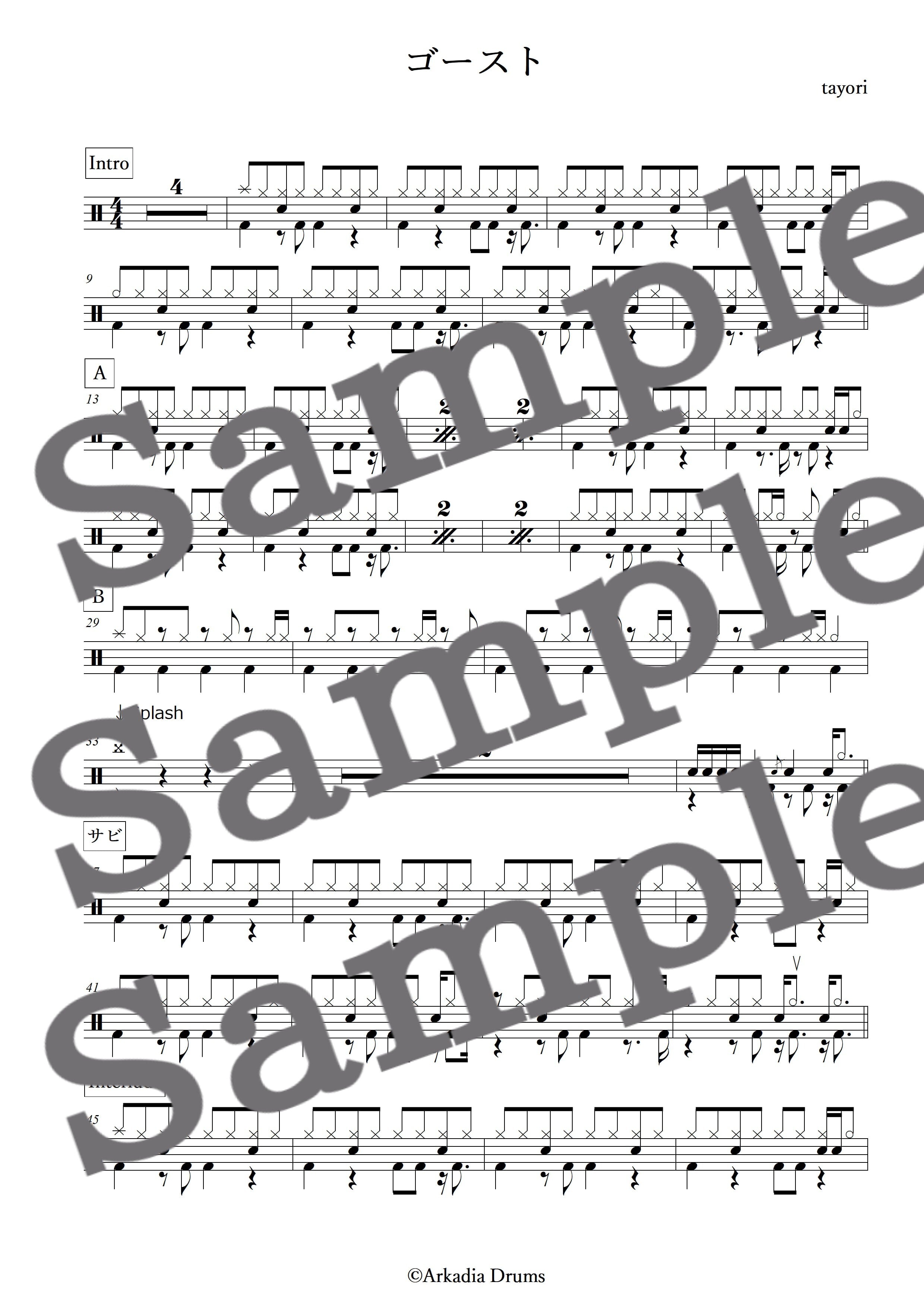 ゴースト(tayori)のドラム楽譜です。