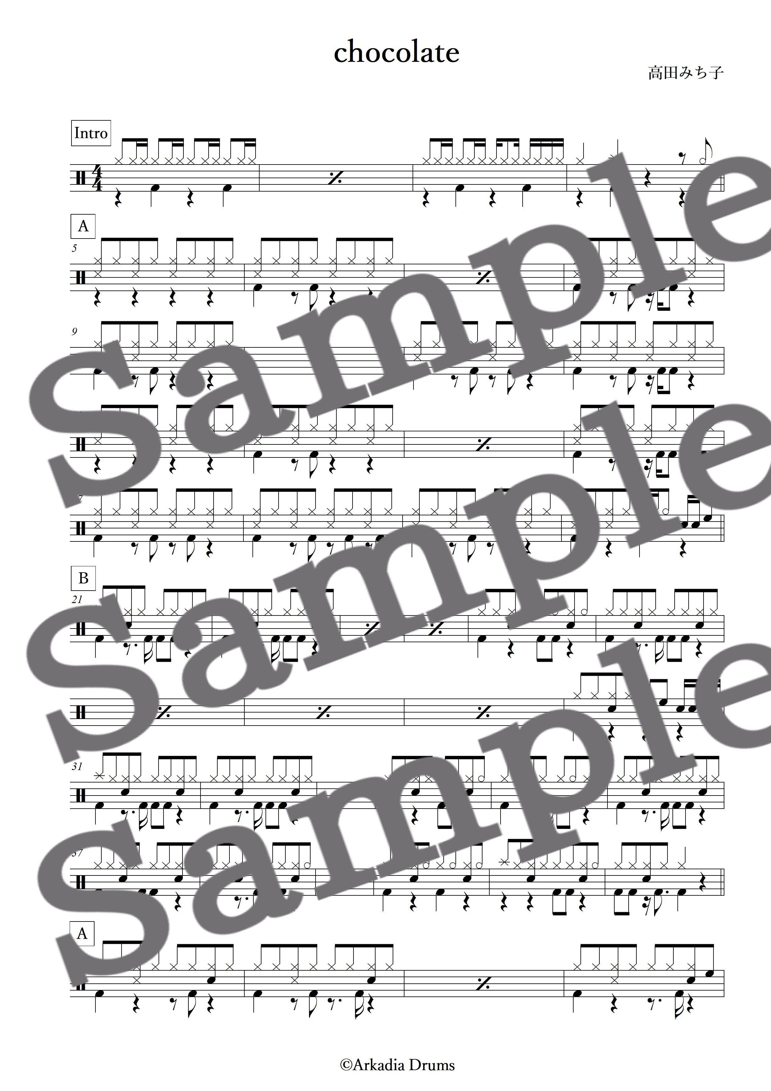 ドラムのみの楽譜であること、また大きめのセクションマークを配置しているので、演奏中でも迷いにくいのが特徴です。