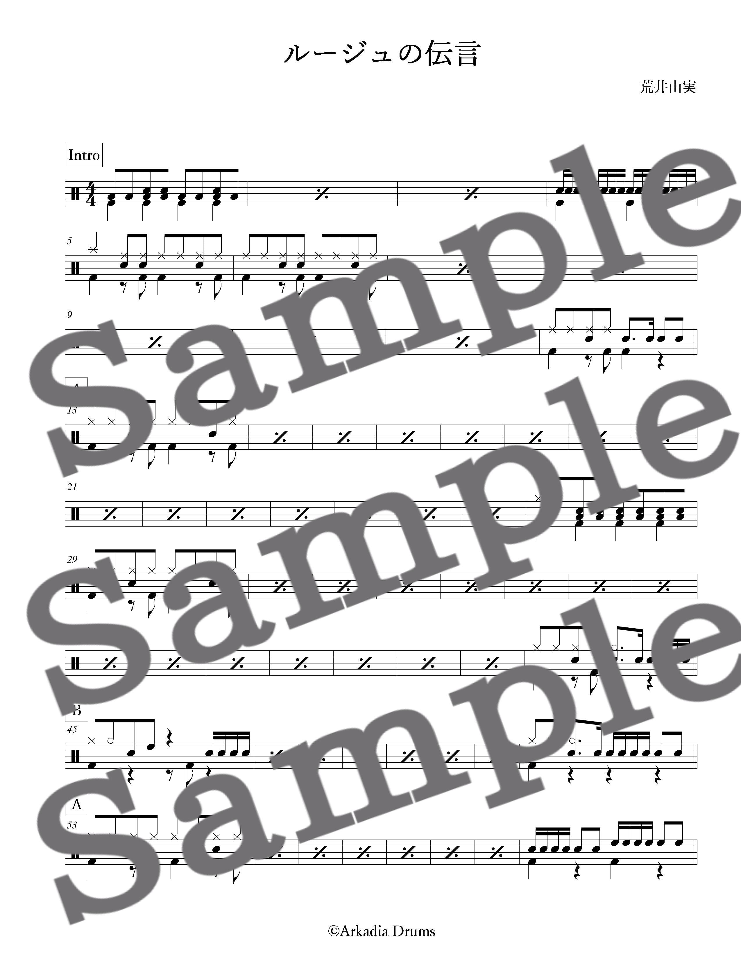 ドラムのみの楽譜であること、また大きめのセクションマークを配置しているので、演奏中でも迷いにくいのが特徴です。