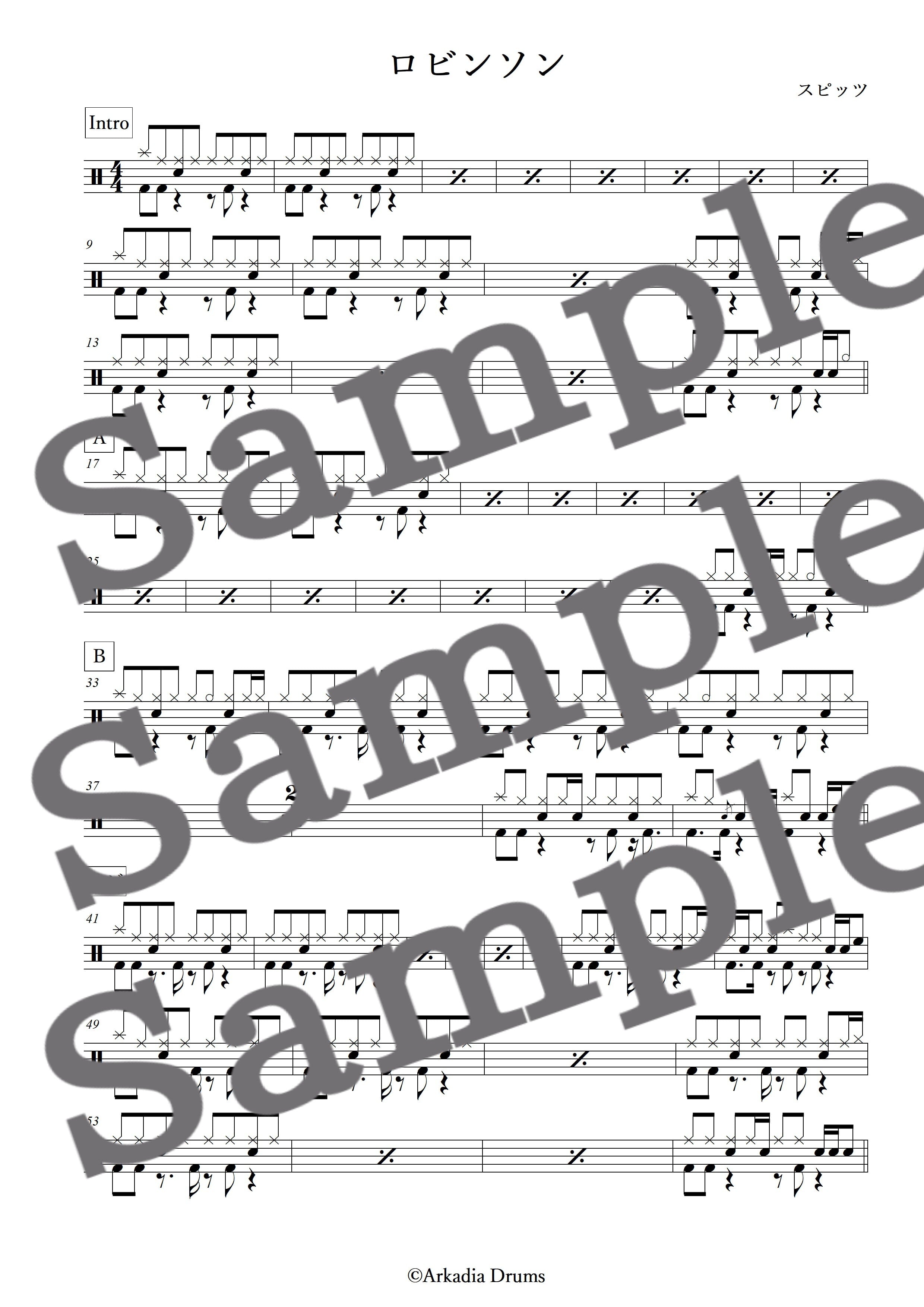 ドラムのみの楽譜であること、また大きめのセクションマークを配置しているので、演奏中でも迷いにくいのが特徴です。