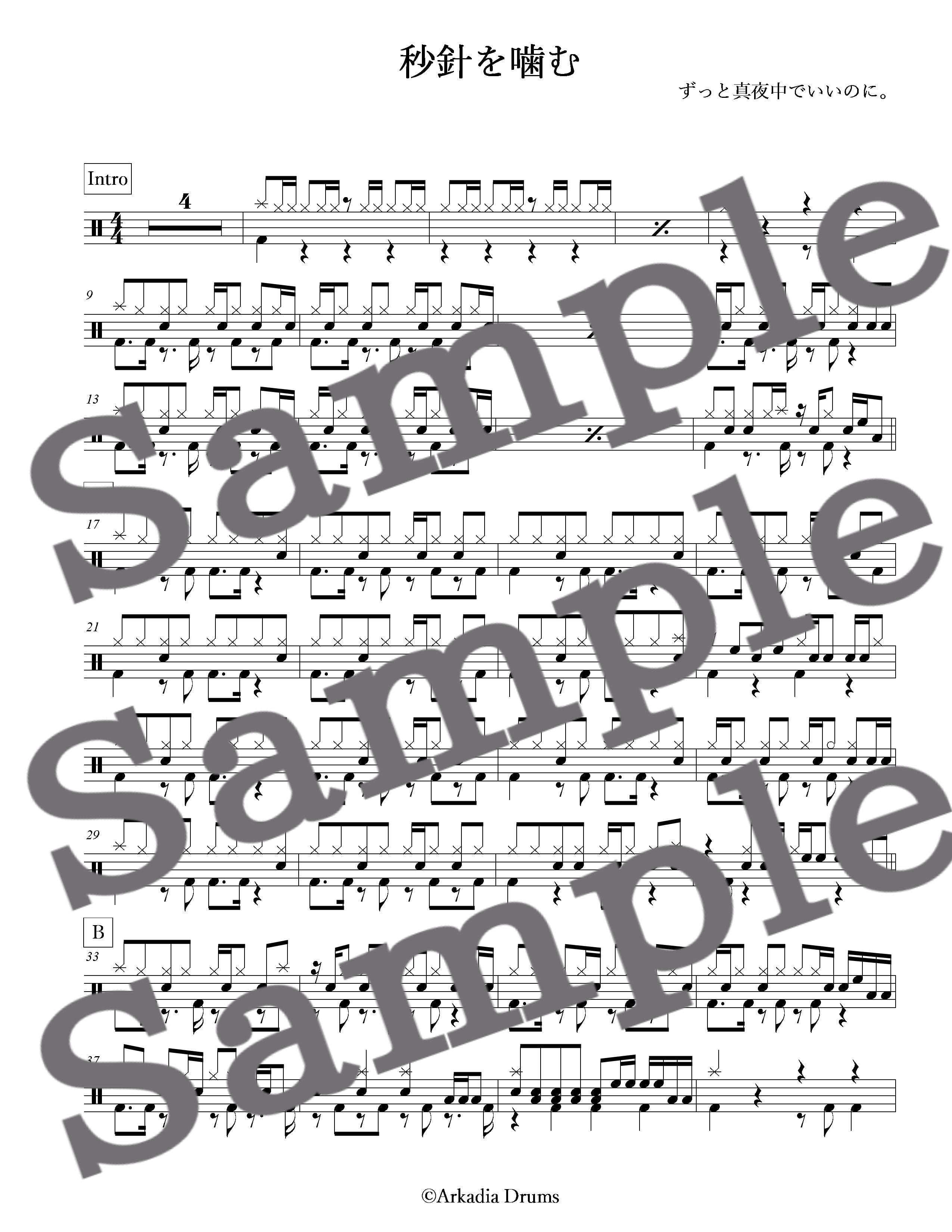 秒針を噛む(ずっと真夜中でいいのに。)のドラム楽譜です。