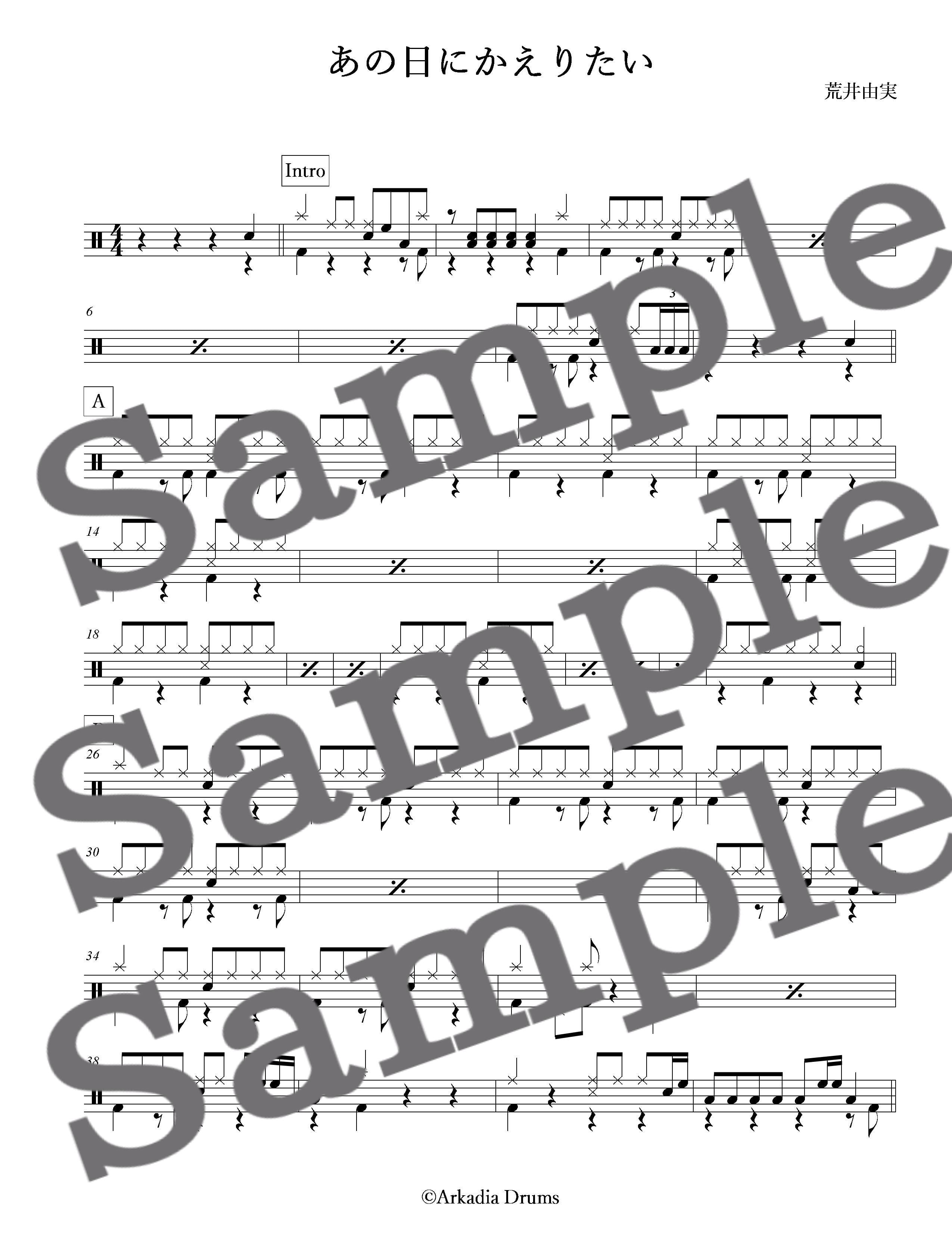 あの日にかえりたい(荒井由実)のドラム楽譜です。