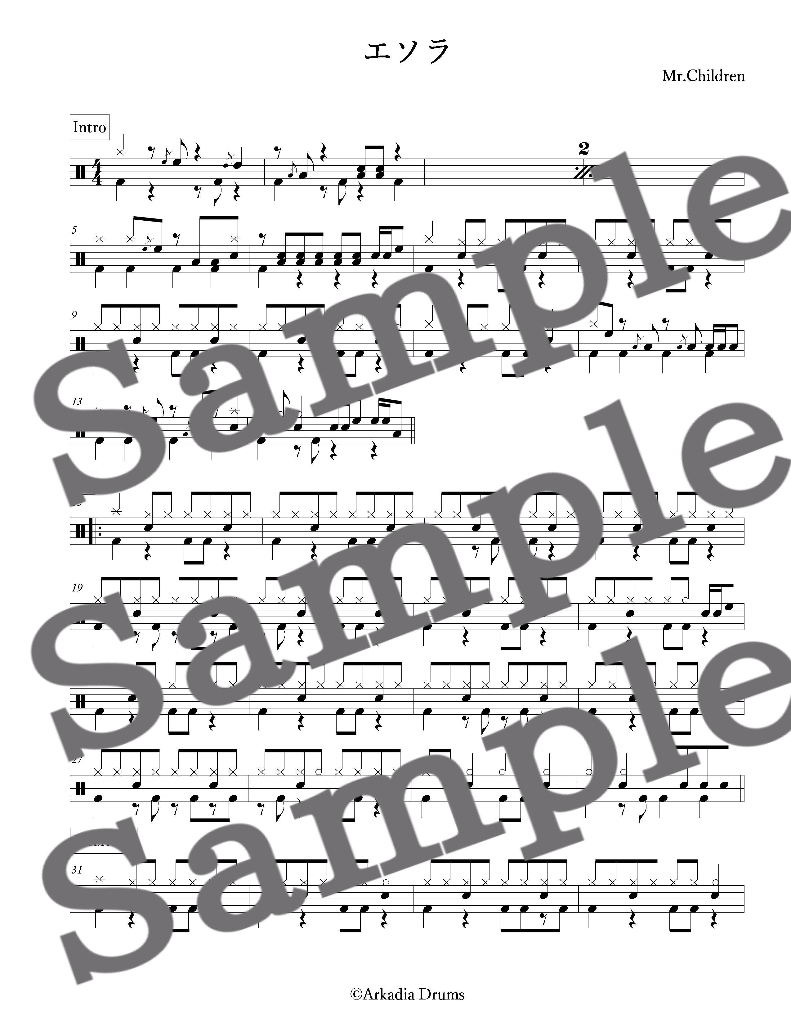 ドラムのみの楽譜であること、また大きめのセクションマークを配置しているので、演奏中でも迷いにくいのが特徴です。
