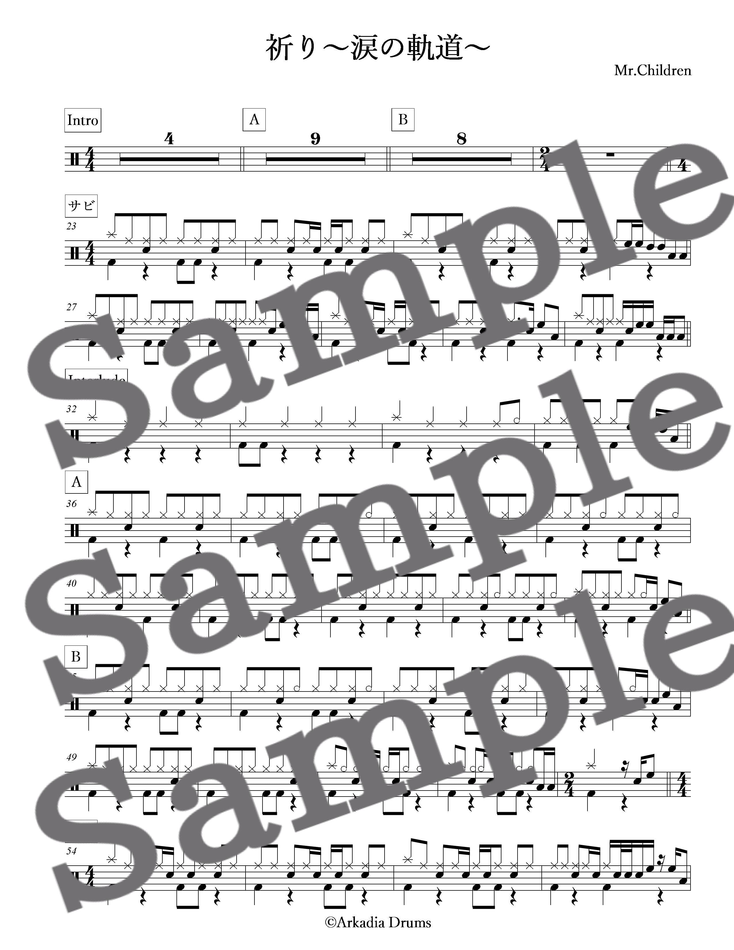 祈り〜涙の軌道〜(Mr.Children)のドラム楽譜です。