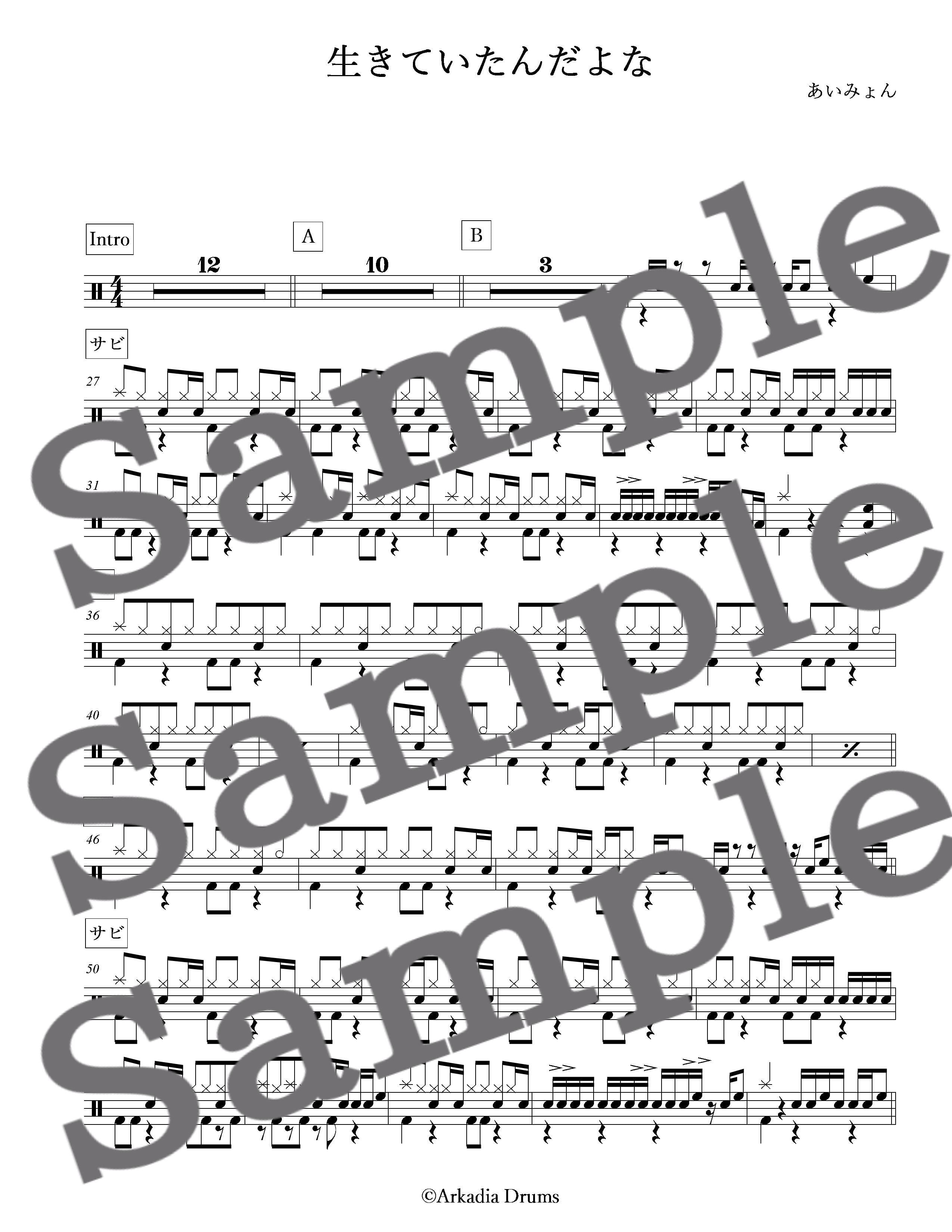 生きていたんだよな(あいみょん)のドラム楽譜です。