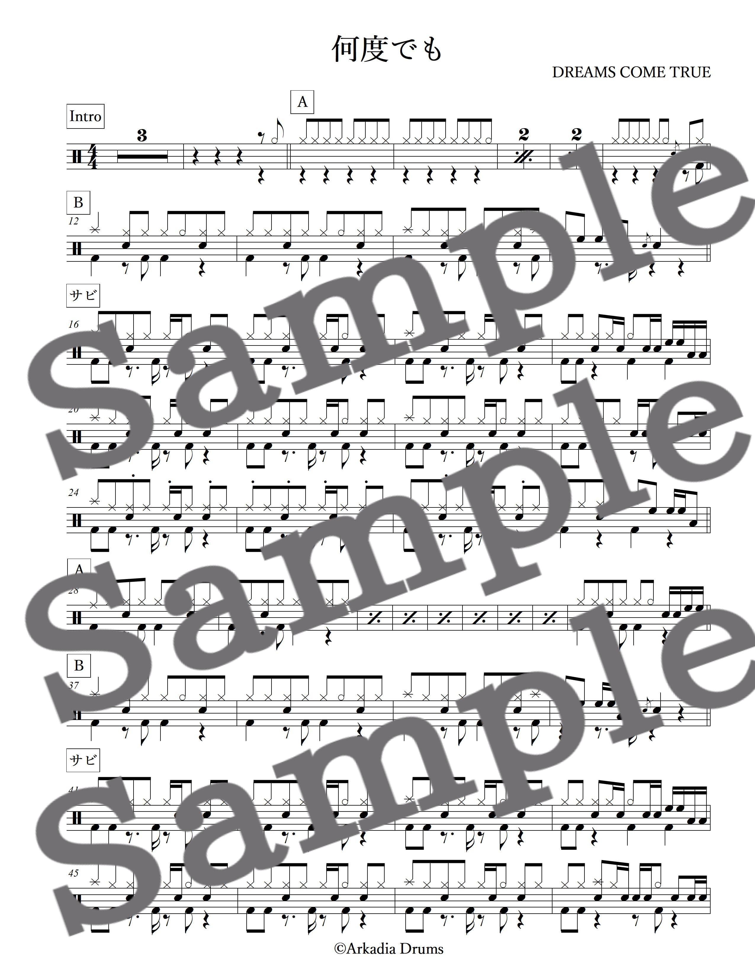 何度でも(DREAMS COME TRUE)のドラム楽譜です。